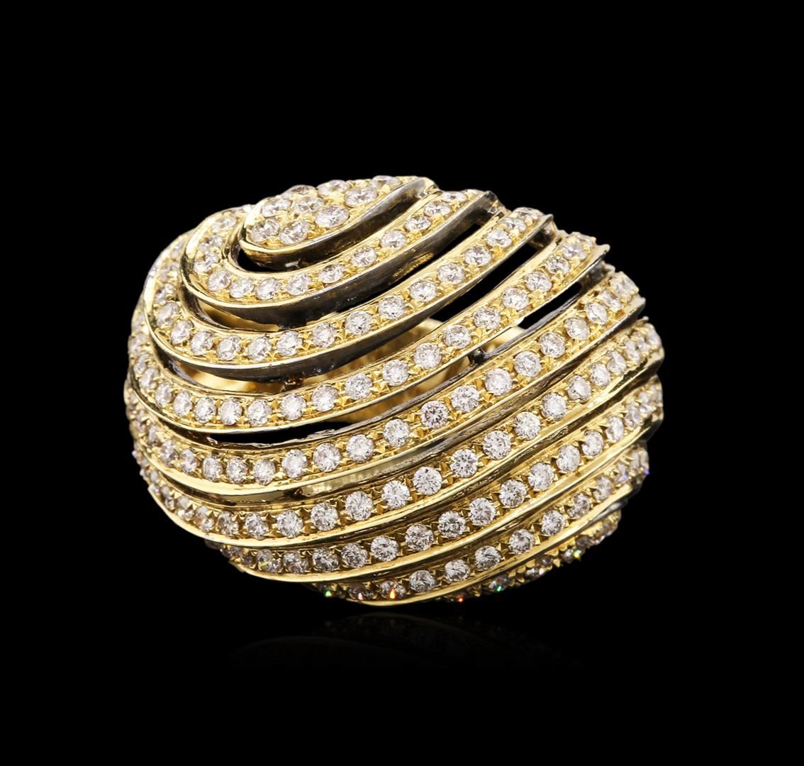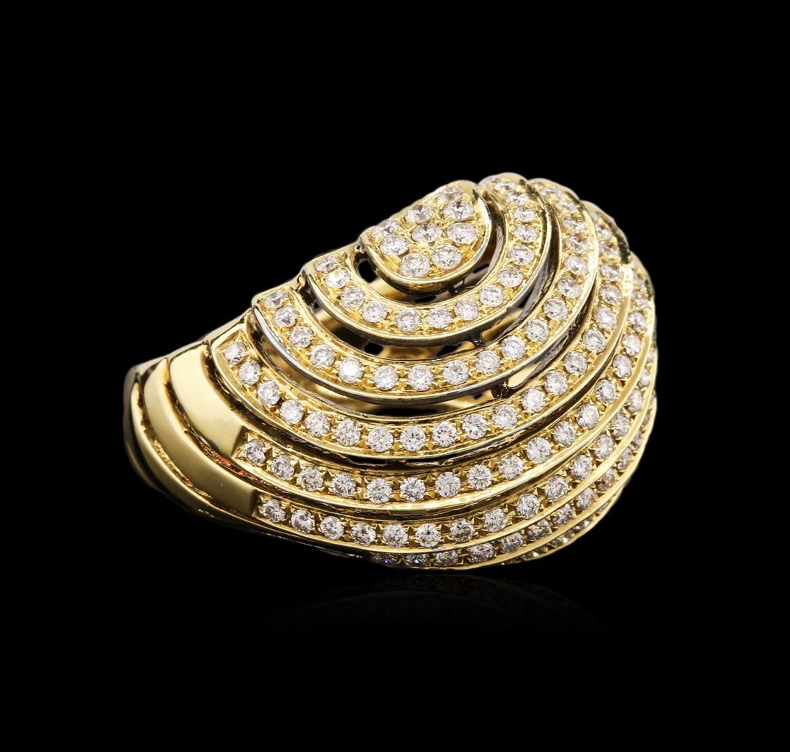 One electronically tested 18KT yellow gold ladies cast diamond ring with a bright polish finish. Identified with markings of "18K". Condition is new. Containing: One Hundred Sixty-Three prong set round brilliant cut diamonds, measuring 1.10 - 1.10 x 0.66mm (depth est.) approximate total weight of 163 Stones = 1.25ct. Clarity: SI-1 to SI-2. Color: H - I. All diamonds are graded in the mounting, unless otherwise stated. Total Weight of Diamonds 1.25ct. Total Weight of Ring 11.40 grams. GGL Appraised at $5,830.00.