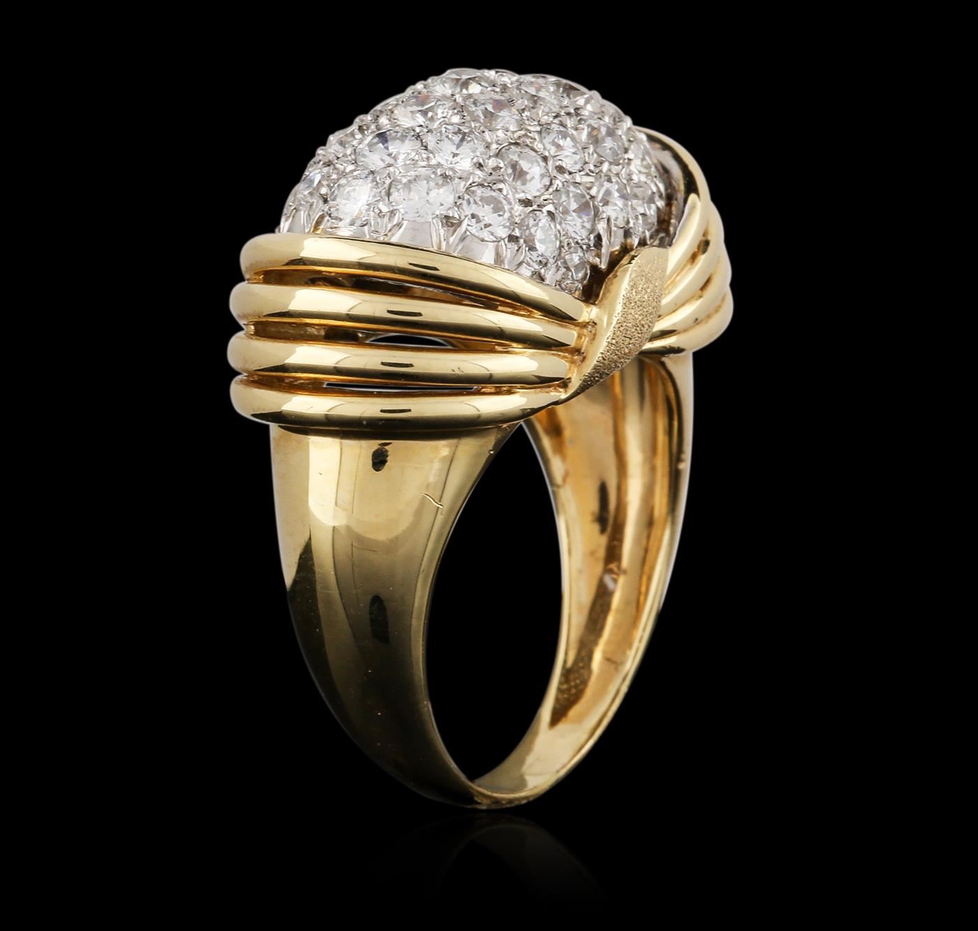 One electronically tested 18KT yellow gold ladies cast diamond ring with a bright polish finish. Condition is new. Containing: Thirty-Seven pave' set round brilliant cut diamonds, measuring 2.50 - 1.80 x 1.29mm (depth est.) approximate total weight of 37 Stones = 1.34ct. Clarity: SI-1 to SI-2. Color: H - I. All diamonds are graded in the mounting, unless otherwise stated. Total Weight of Diamonds 1.34ct. Total Weight of Ring 10.30 grams. GGL Appraised at $6,345.00.