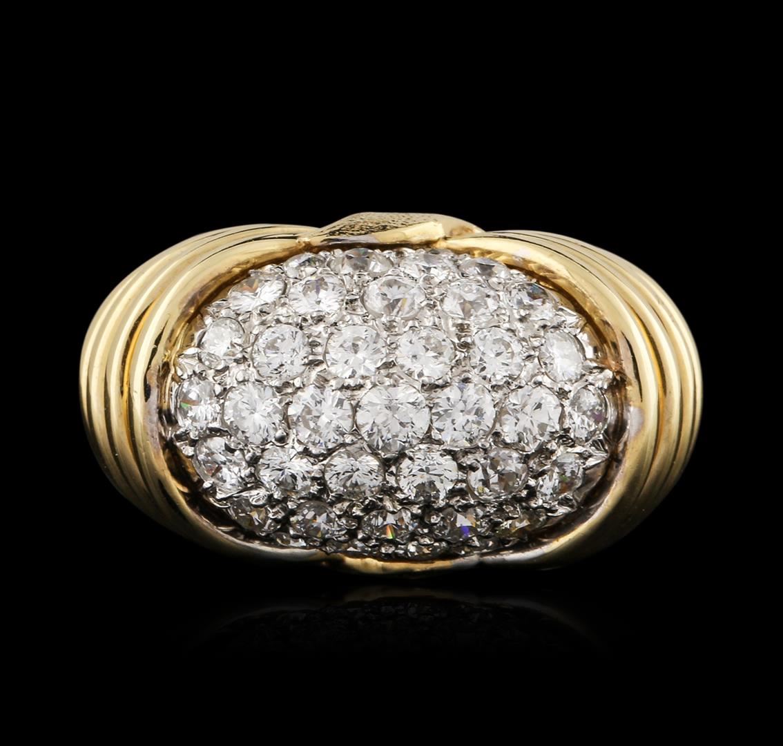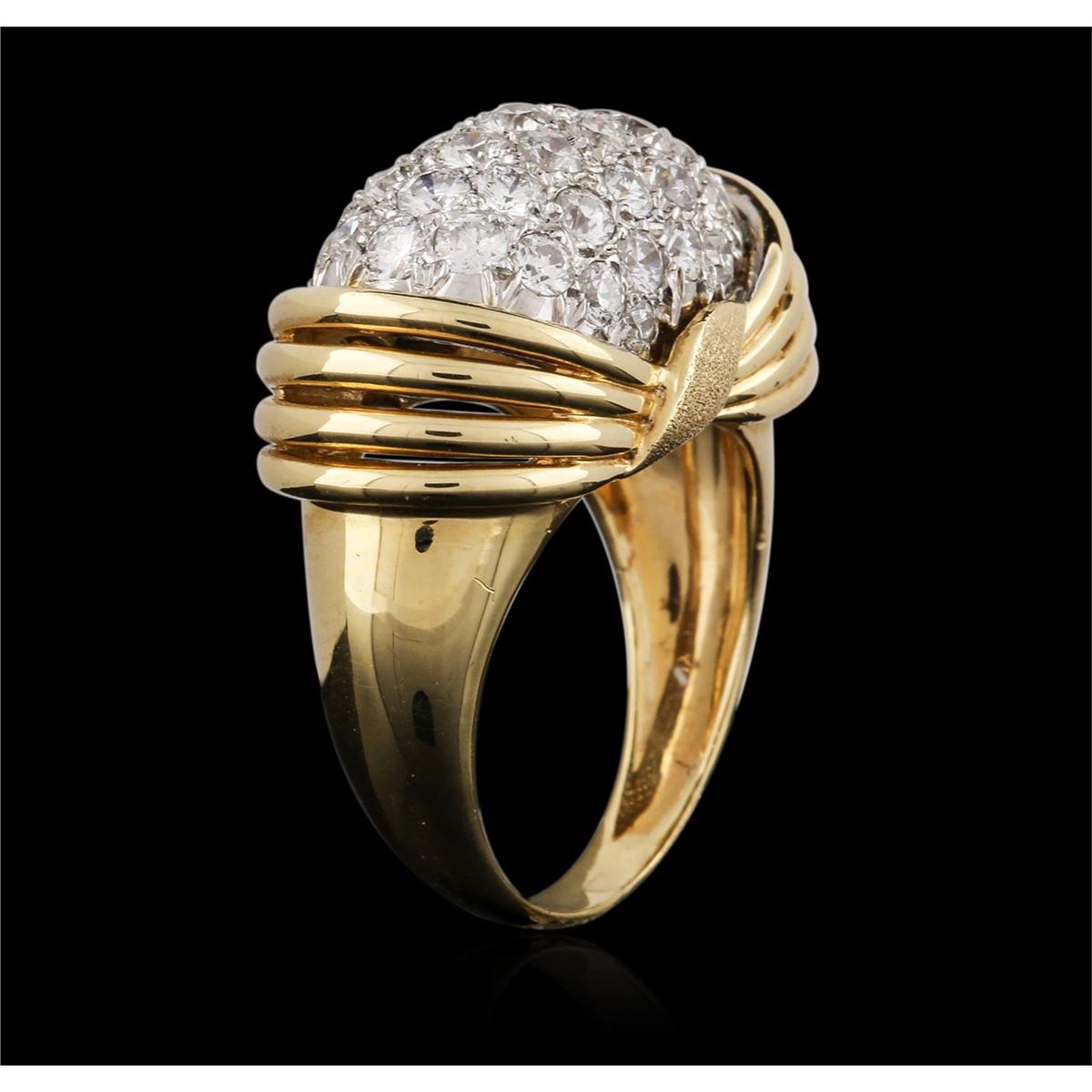 One electronically tested 18KT yellow gold ladies cast diamond ring with a bright polish finish. Condition is new. Containing: Thirty-Seven pave' set round brilliant cut diamonds, measuring 2.50 - 1.80 x 1.29mm (depth est.) approximate total weight of 37 Stones = 1.34ct. Clarity: SI-1 to SI-2. Color: H - I. All diamonds are graded in the mounting, unless otherwise stated. Total Weight of Diamonds 1.34ct. Total Weight of Ring 10.30 grams. GGL Appraised at $6,345.00.
