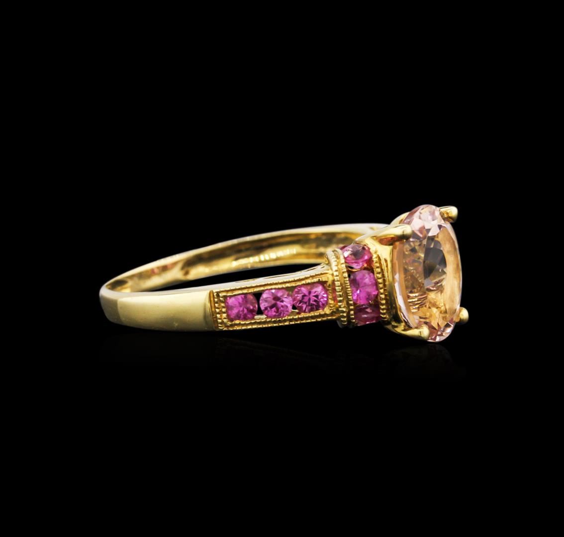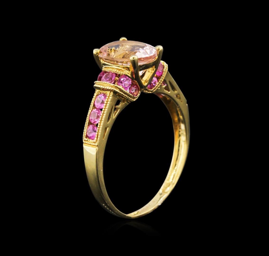One ring featuring: 18KT yellow gold weighing 2.78 grams containing one morganite center stone with a total weight of 1.66ct and 16 pink sapphires with a total weight of 0.70ct.