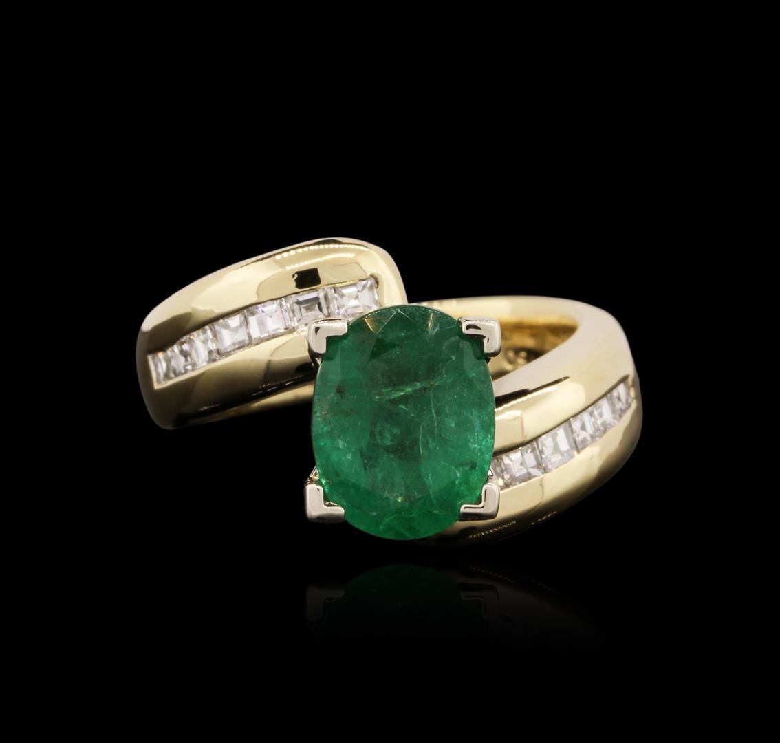 One ring featuring: 18KT yellow gold weighing 9.05 grams containing one oval cut emerald weighing 1.85ct and princess cut diamonds weighing a total of 0.50ct.