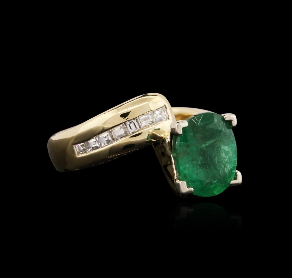One ring featuring: 18KT yellow gold weighing 9.05 grams containing one oval cut emerald weighing 1.85ct and princess cut diamonds weighing a total of 0.50ct.