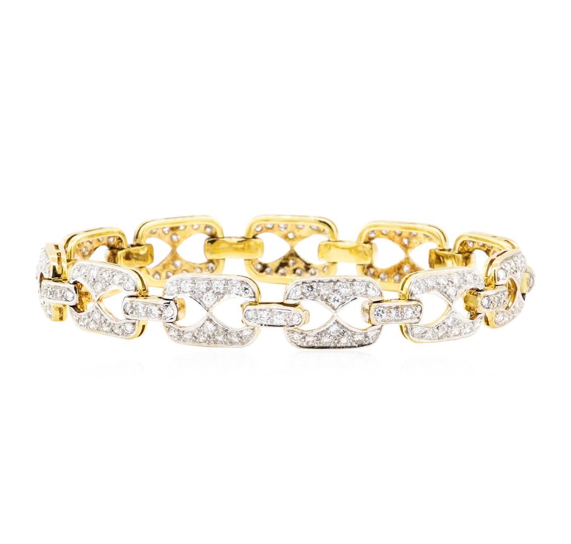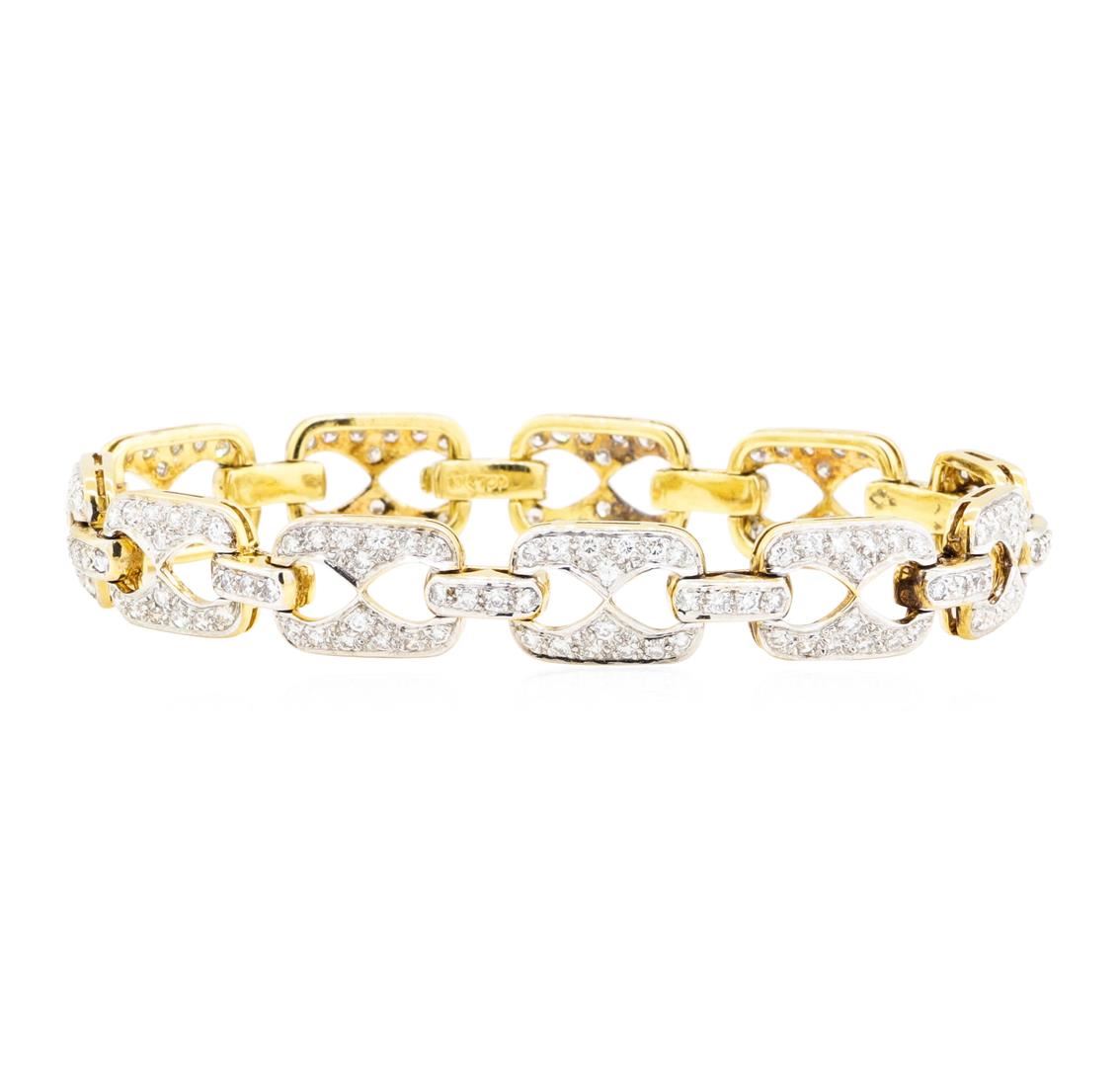 One electronically tested 18KT yellow gold Ladies combination cast & assembled fashion bracelet with a foldover buckle clasp with a bright polish finish. The featured Ladies bracelet measures approximately six and three quarter inches in length. Identified with markings of '18K'. Condition is new, good workmanship. Containing: One Hundred Ninety-Eight bead set round brilliant cut diamonds, measuring 1.40 - 1.35 x 0.86mm (depth est.) approximate total weight of 198 Stones = 2.00ct. Graded in the setting. Color H - I Clarity VS-2 to SI-1 Cut Good. Total Weight of Diamonds 2.00ct.. Total Weight of Bracelet 21.50gm. GAS Appraised.