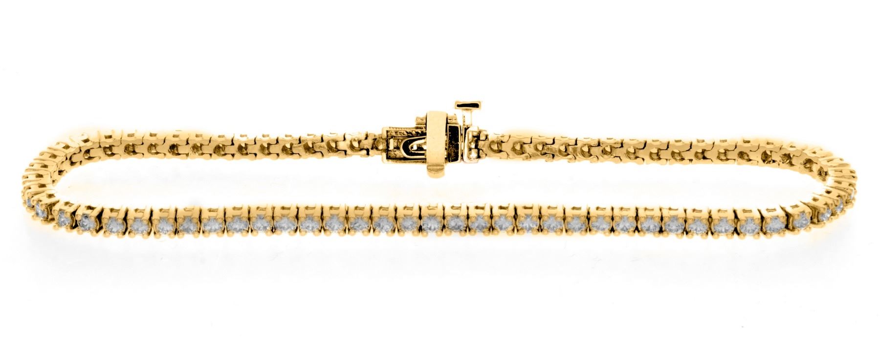 One 18KT Yellow Gold 2.00ctw Diamond Tennis Bracelet. (70) Round Diamonds with a total weight of 2.00cts with a color of I-J and clarity of VS-2 to SI-2.