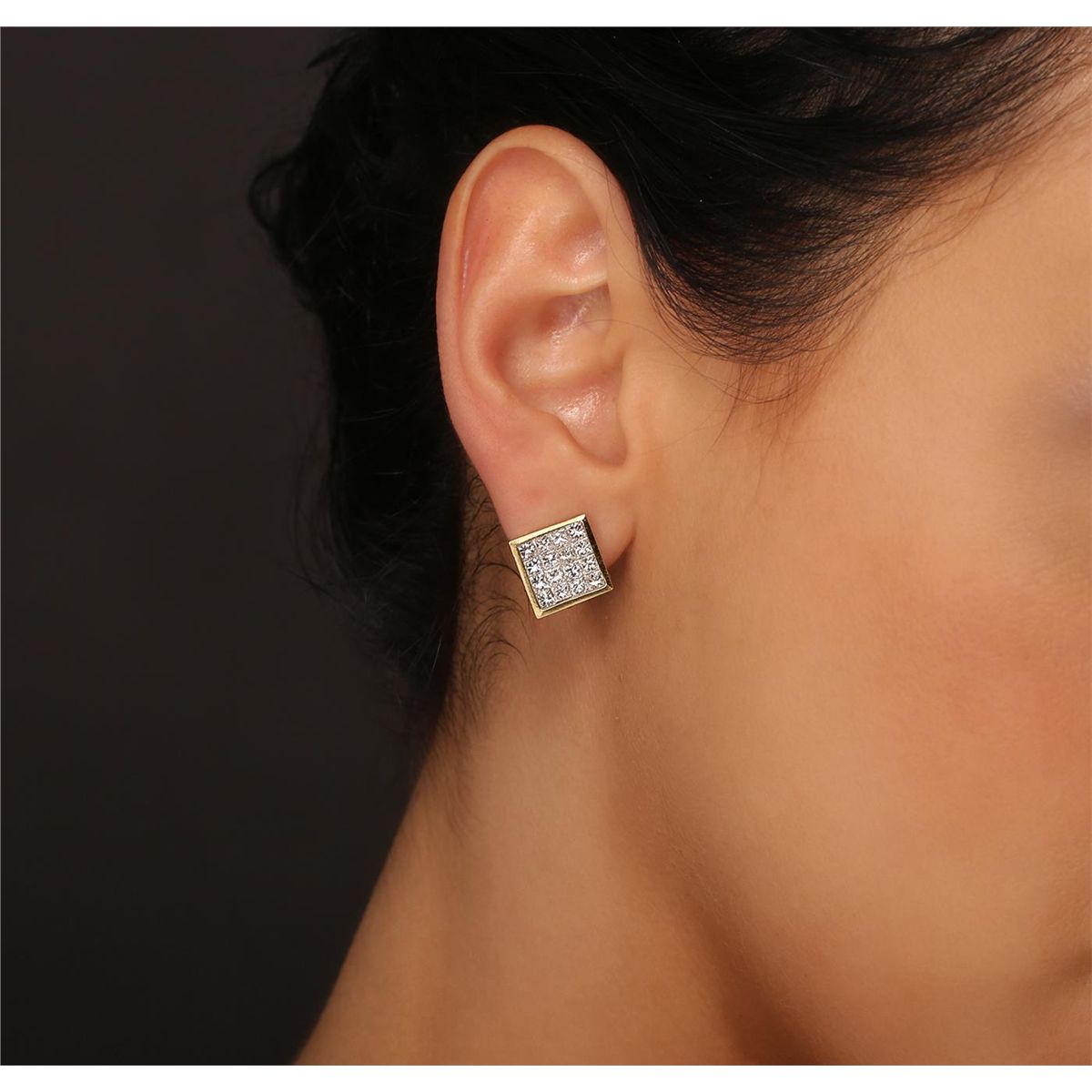 One pair electronically tested 18KT yellow gold Ladies combination cast & assembled earrings with Omega clip backs with a bright polish finish. Condition is new. Identified with markings of "18K". Containing: Thirty-Two invisible set princess cut diamonds, measuring 2.40 x 2.30 x 1.73mm (depth est.) approximate. Total Weight of 32 Stones = 2.51ct. Clarity: SI-1. Color: H - I, Cut is Good. Total Weight of Diamonds 2.51ct. Total Weight of Earrings 6.90 grams. GGL Appraised at $8,335.00.