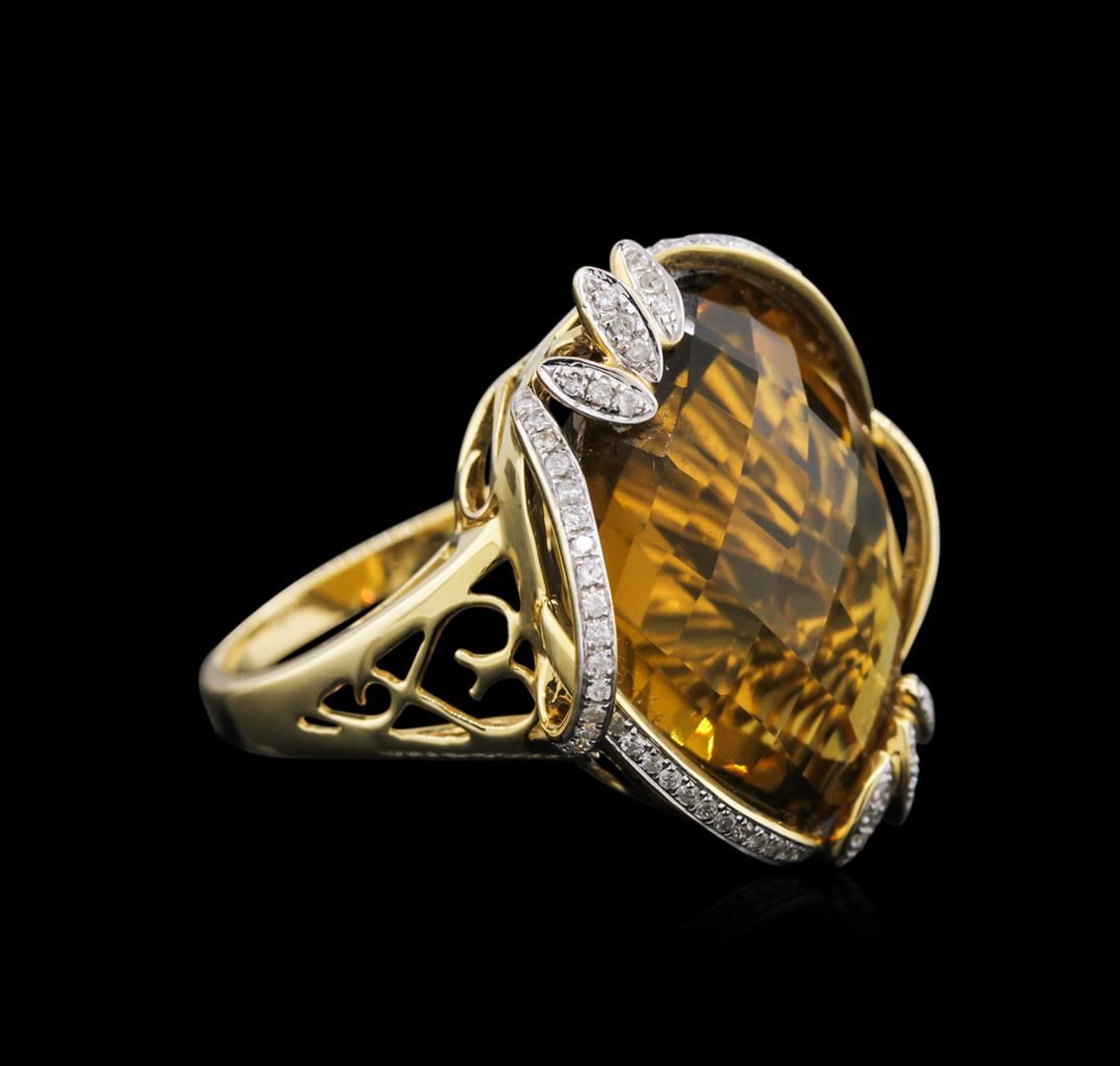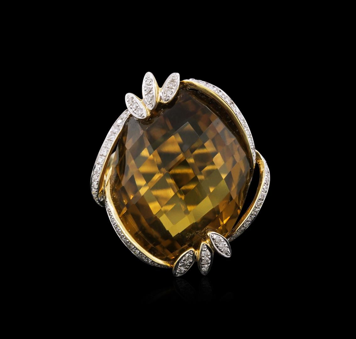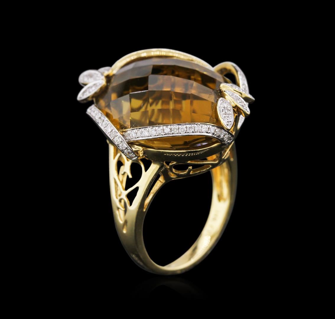 One ring featuring: 18KT yellow gold weighing 7.54 grams containing one champagne quartz center stone with a total weight of 28.10ct and 86 round diamonds with a total weight of 0.37ct.