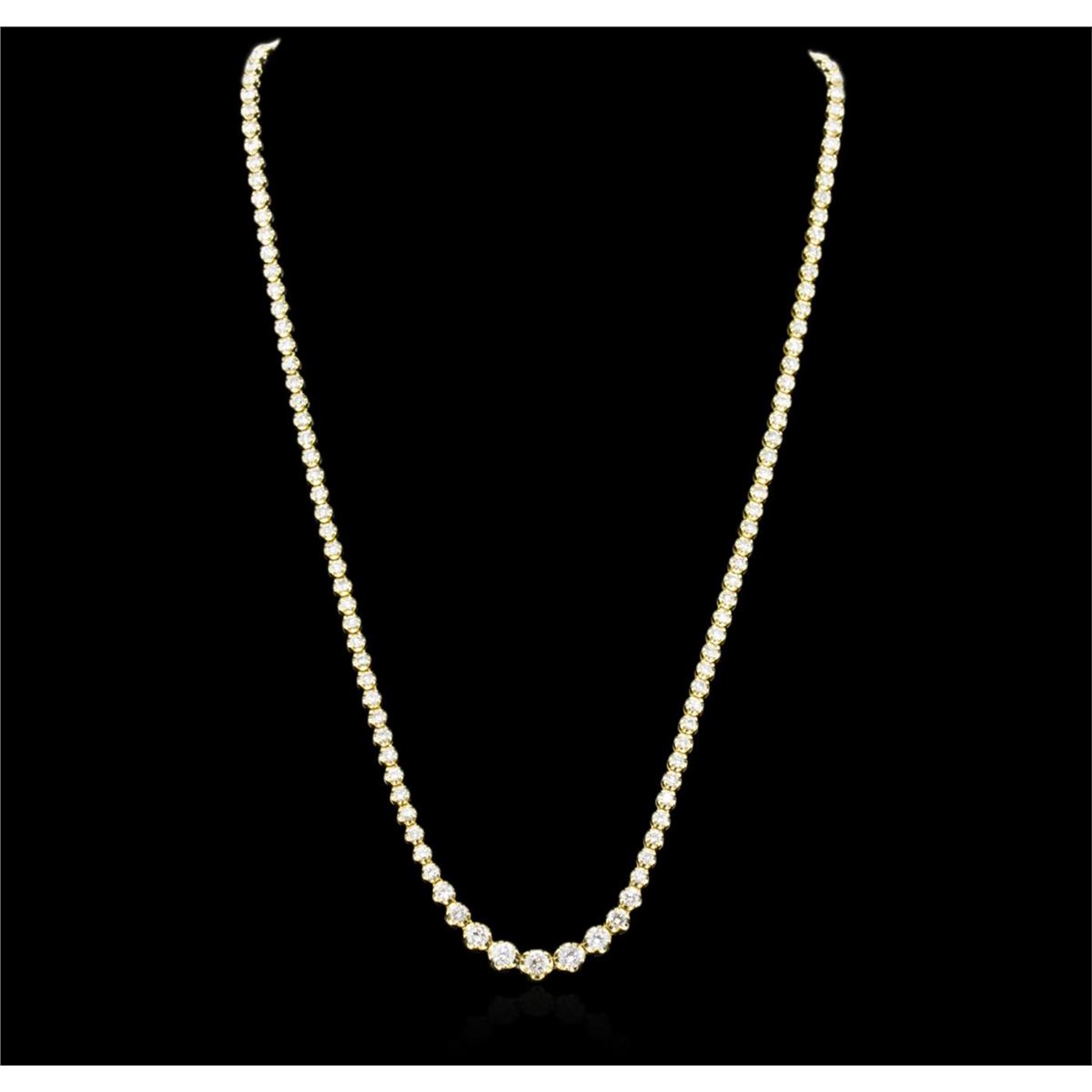 One electronically tested 18KT yellow gold ladies combination cast & assembled diamond necklace with a hidden box clasp with safety closer with a bright polish finish. Measurements: 16.50" in length Identified with markings of "K18". Condition is new. Containing: Eight prong set round brilliant cut diamonds, measuring 3.50 - 3.00 x 1.95mm (depth est.) approximate total weight of 8 Stones = 1.01ct. Clarity: SI-1 to I-2. Color: I - J. One Hundred Twenty prong set round brilliant cut diamonds, measuring 2.00 - 2.00 x 1.20mm (depth est.) approximate total weight of 120 Stones = 3.50ct. Clarity: SI-1 to I-1. Color: I - J, Cut is Good. All diamonds are graded in the mounting, unless otherwise stated. Total Weight of Diamonds 4.51ct. Total Weight of Necklace 16.90 grams. GGL Appraised at $10,595.00.