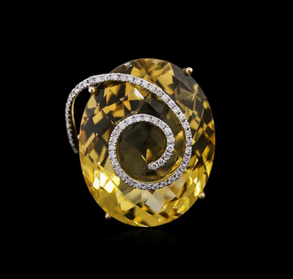 One ring featuring: 18KT yellow gold weighing 6.57 grams containing one citrine center stone with a total weight of 41.50ct and 61 round diamonds with a total weight of 0.34ct.