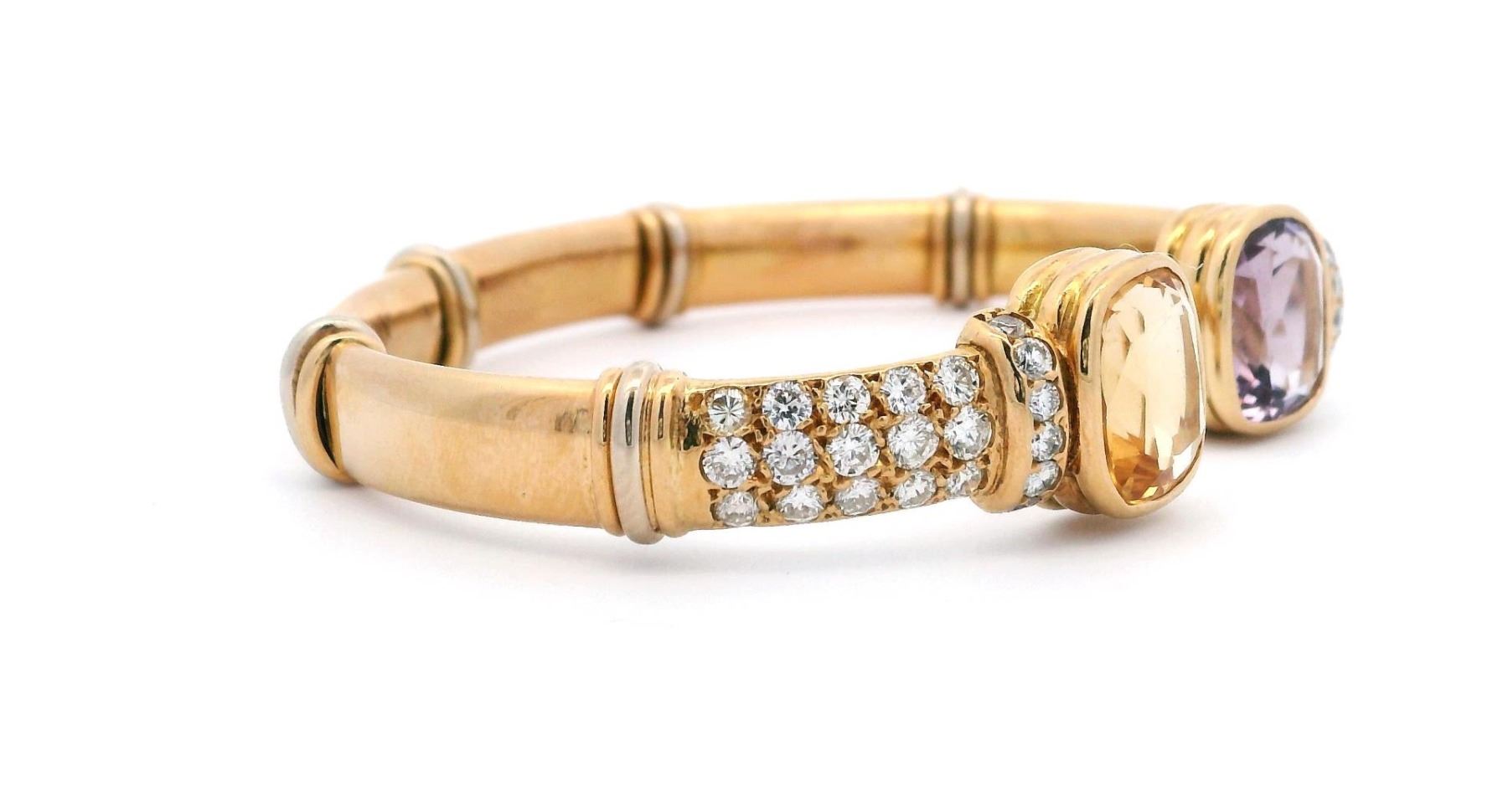 18KT Yellow Gold 9.26 ctw Amethyst, Citrine & Diamond Flex Bangle Bracelet