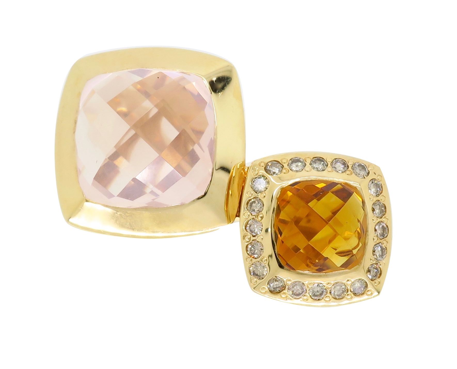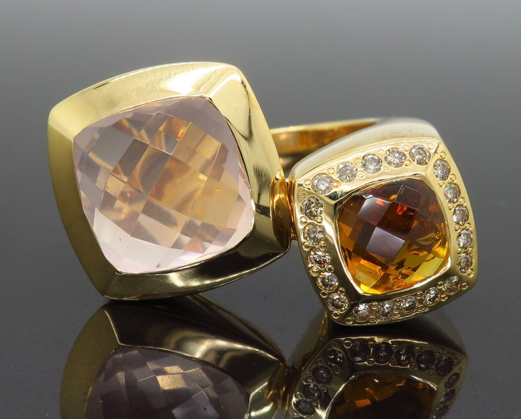 18KT Yellow Gold Citrine, Rose Quartz and Diamond Ring