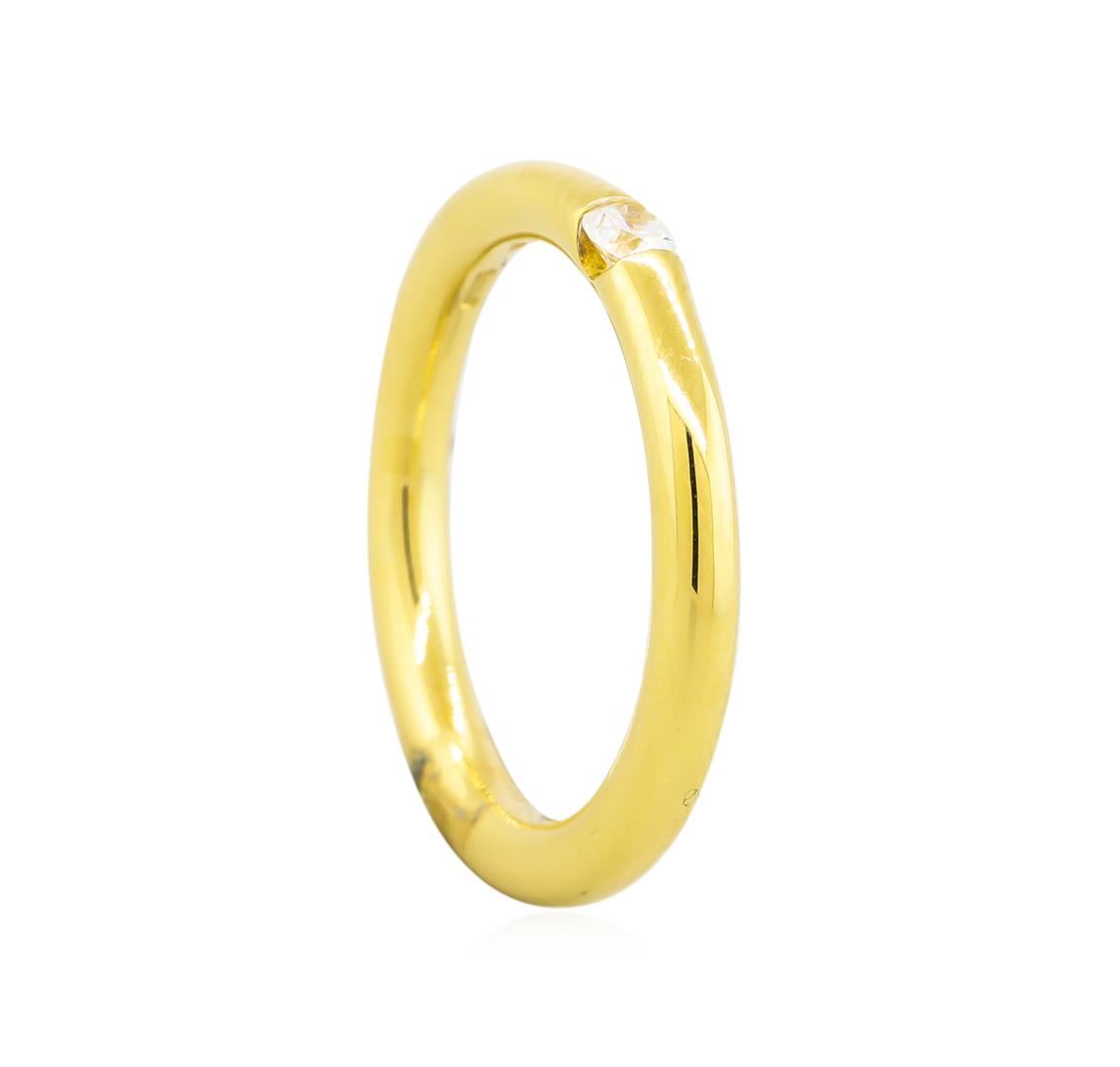 18KT Yellow Gold Designer Diamond Ring. This gorgeous ring is stamped with "Pianegonda" on the bottom side of the ring and "750" on the inside. This ring is 18KT yellow gold and has a weight of approximately 5.31 grams and contains one round cut channel set .10ct diamond. This ring is size 7.