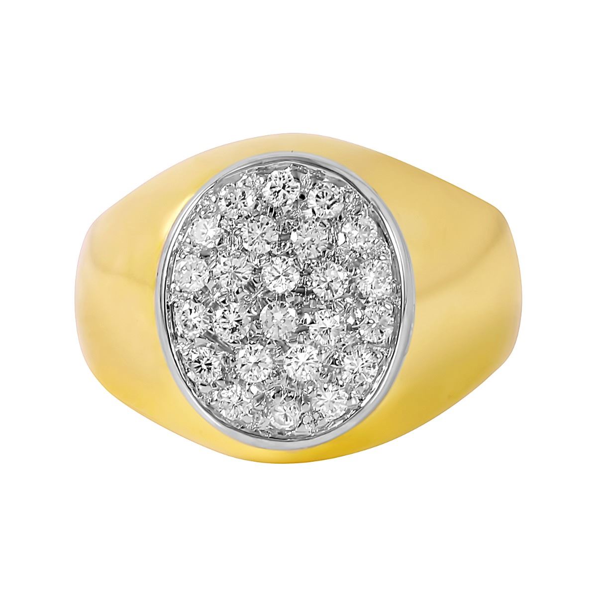 One electronically tested 18KT yellow gold ladies combination cast & assembled diamond ring with a bright and brushed finish. Identified with markings of "750". Condition is excellent. Containing: Twenty-Four pave' set round brilliant cut diamonds, measuring 1.50 - 1.50 x 0.90mm (depth est.) approximate total weight of 24 Stones = 0.30ct. Clarity: VS. Color: H - I, Cut is Very Good. Approximate Total Weight of Diamonds 0.30ct. Total Weight of Ring 7.86gm. Ring Size 6. The descriptions listed should not be construed as an appraisal. The detail is provided as a guideline for color, clarity, weights and measurements to the best of our ability. We welcome inspections. WE SHIP WORLDWIDE!