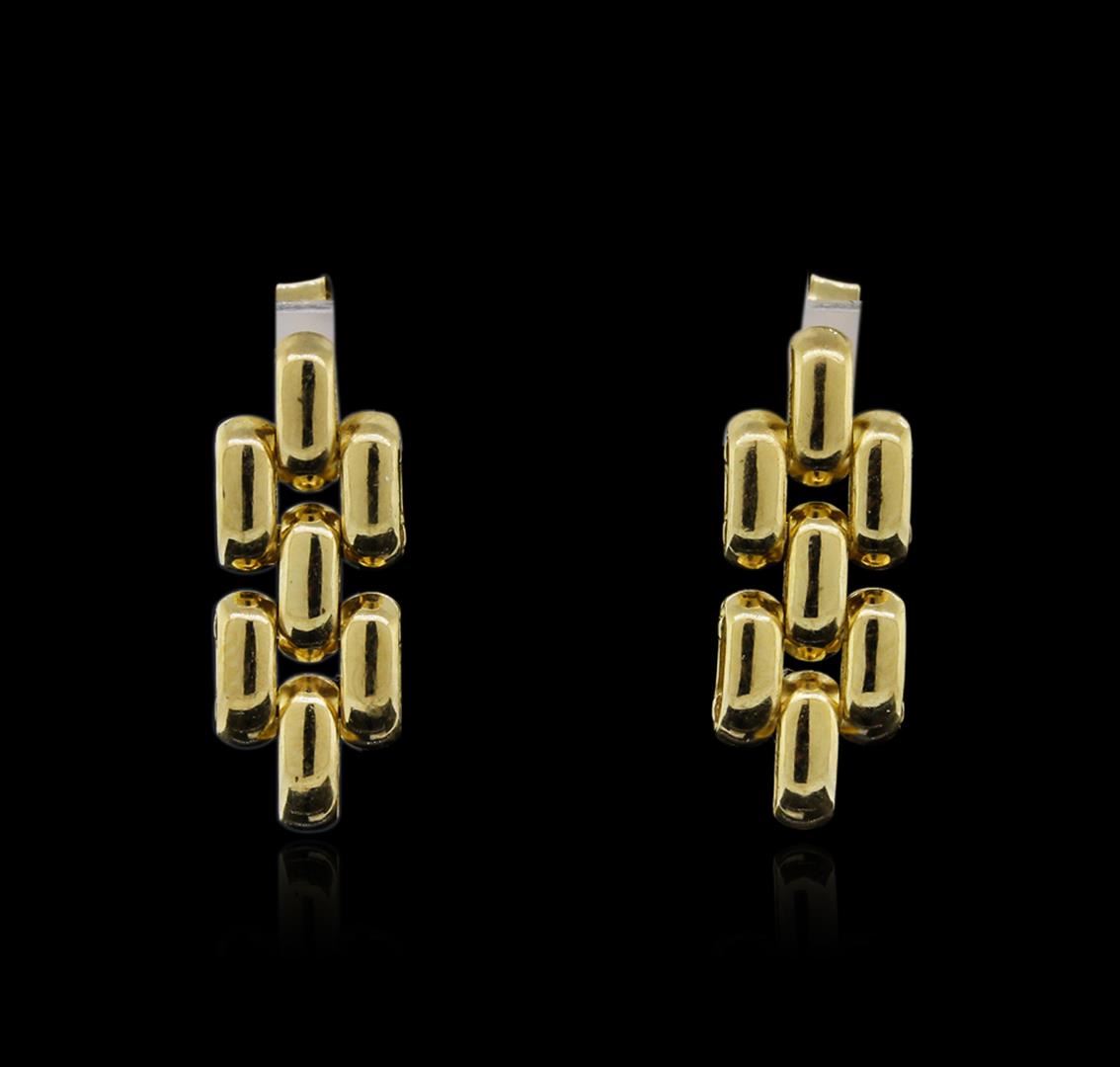 One pair of link style earrings featuring: 18KT yellow gold weighing 2.43 grams.