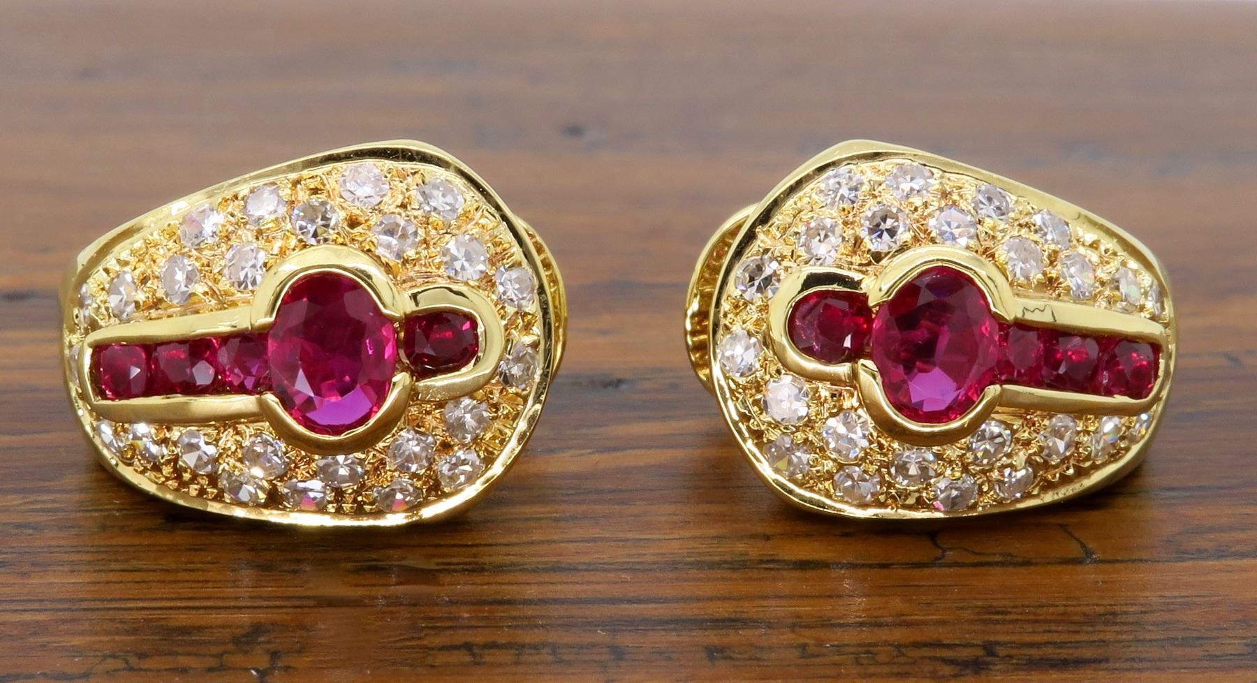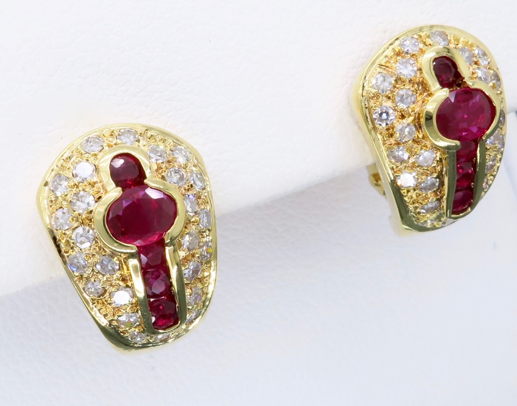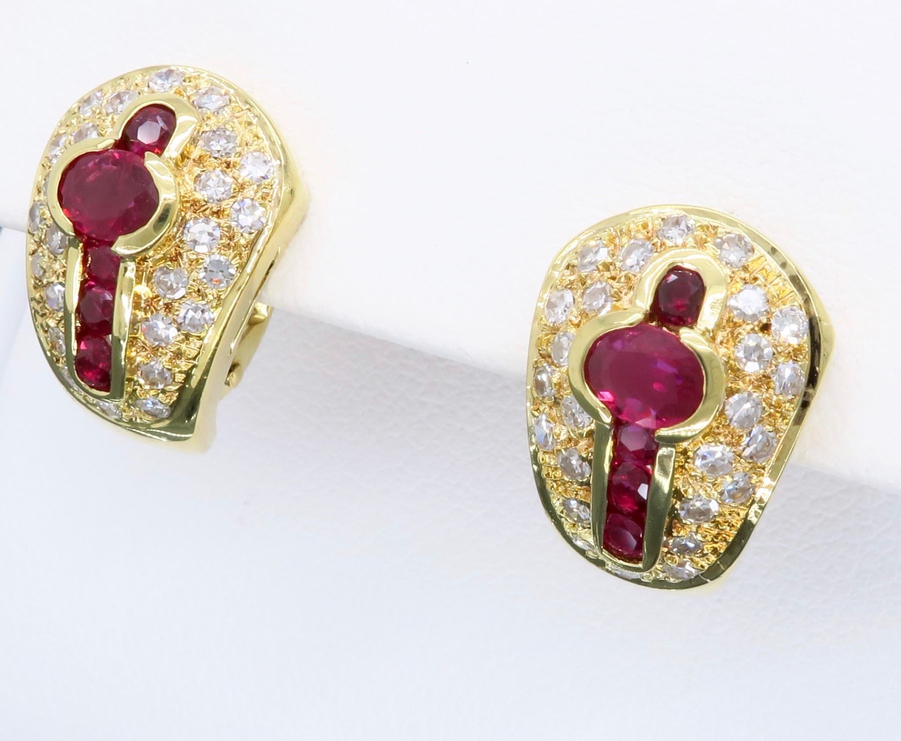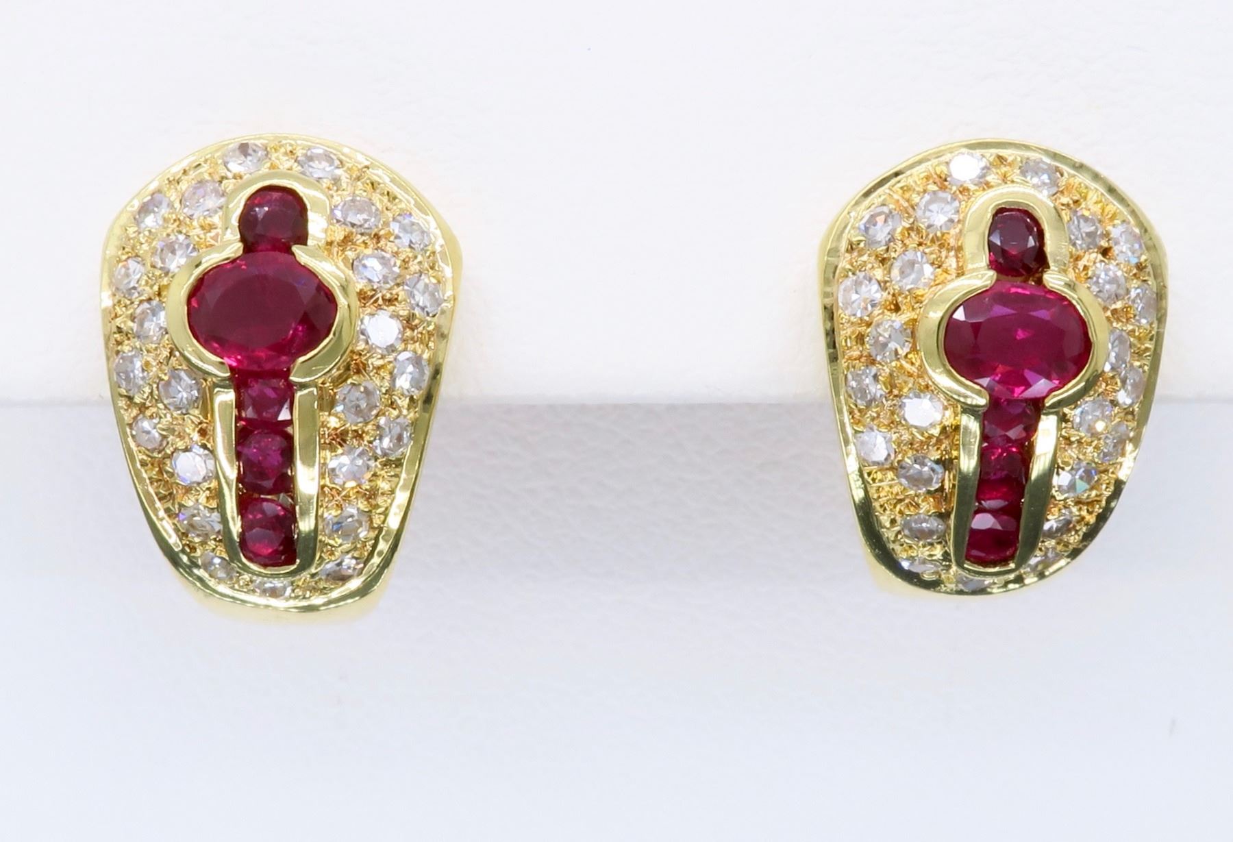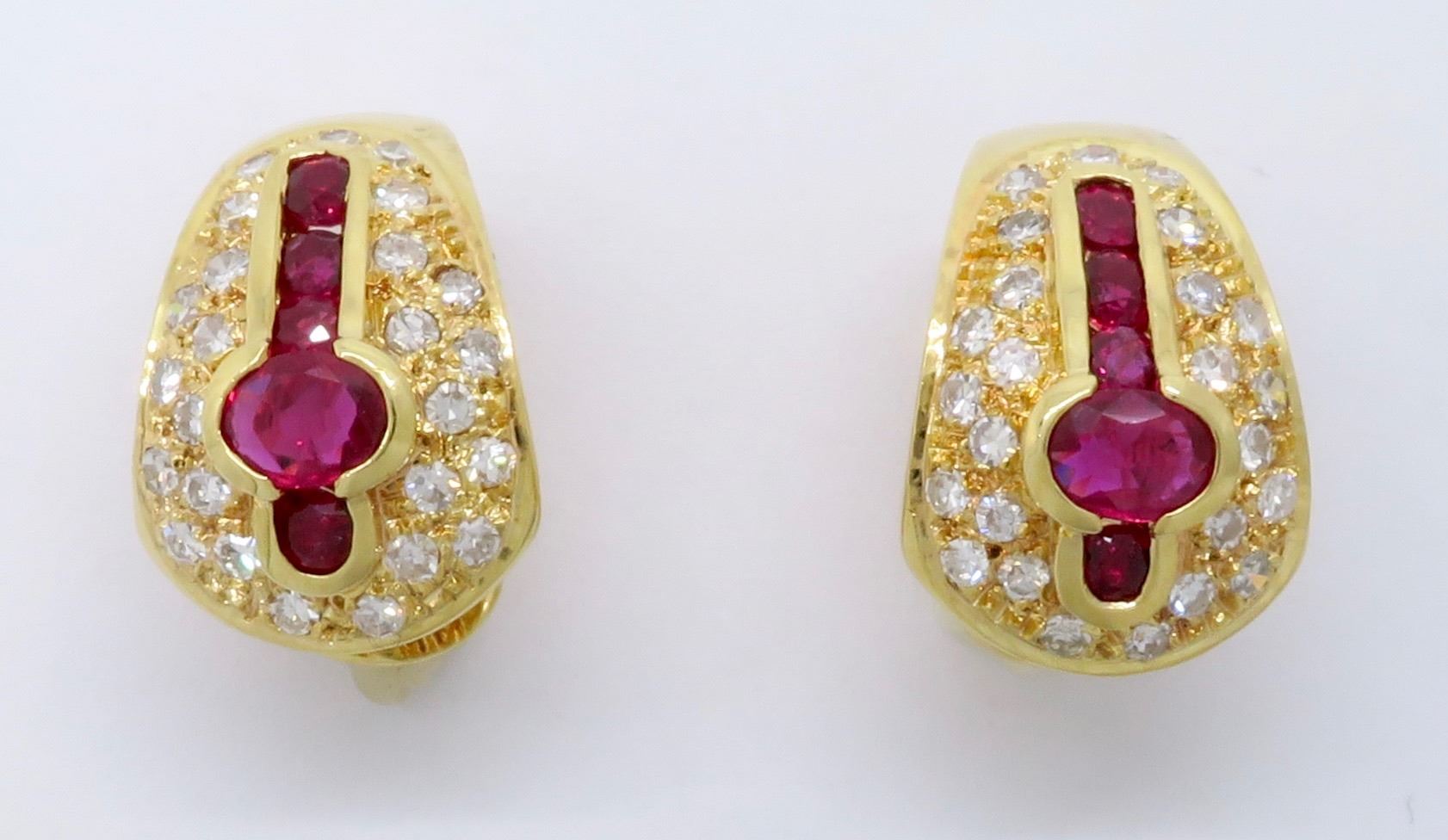 One pair of 18KT Yellow Gold Ruby and Diamond Earrings. Diamonds with a total weight of 0.50cts. Total weight of this these earrings are 6.9 grams.