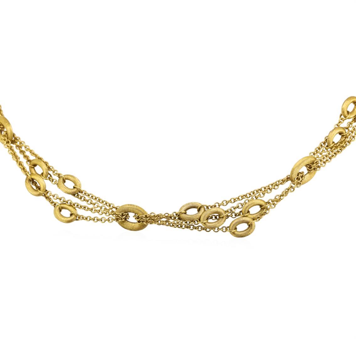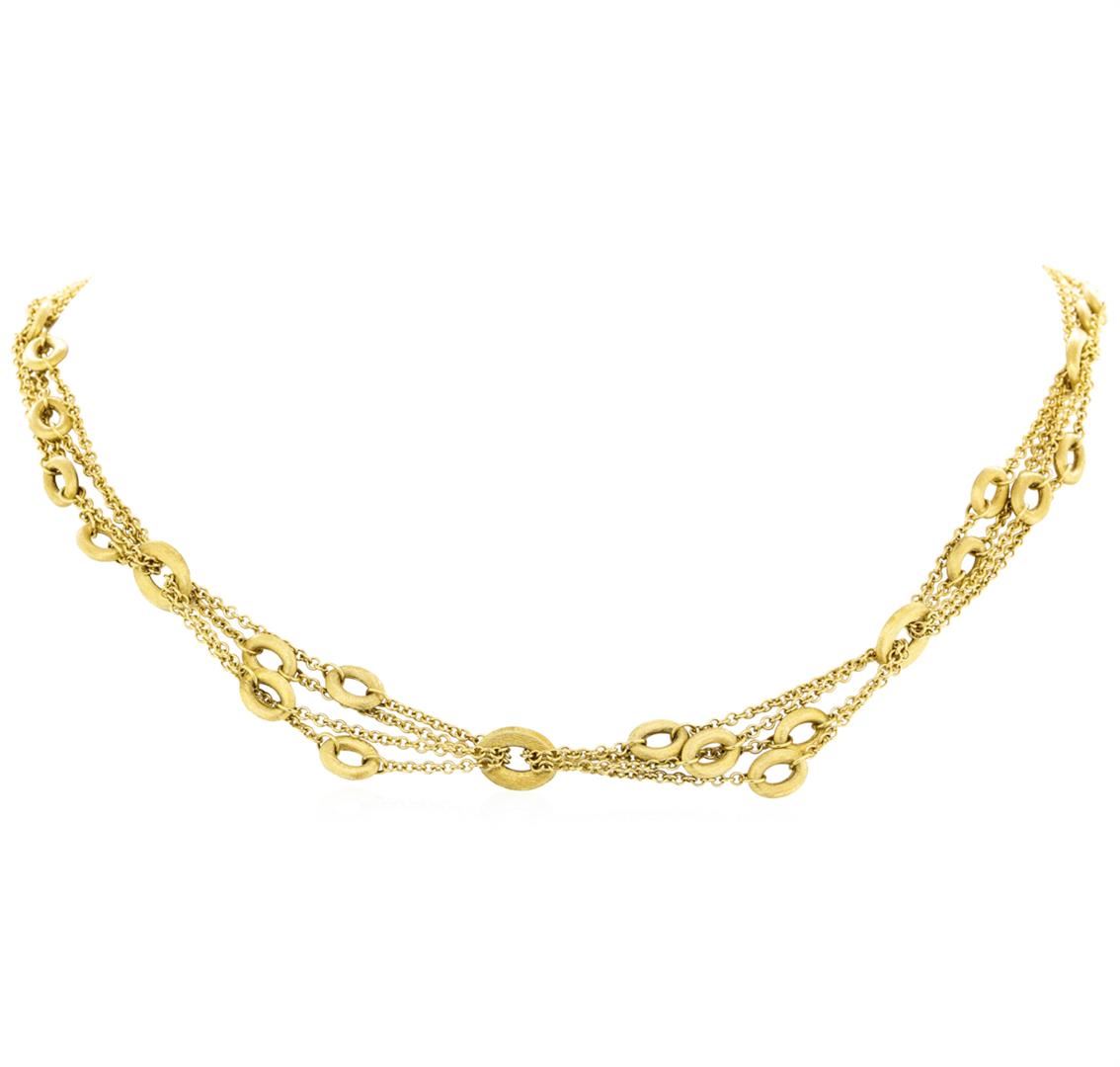 One oval link Nanis necklace featuring: 18KT yellow gold weighing 24.4 grams. The necklace measures approximately sixteen and a half inches in length.