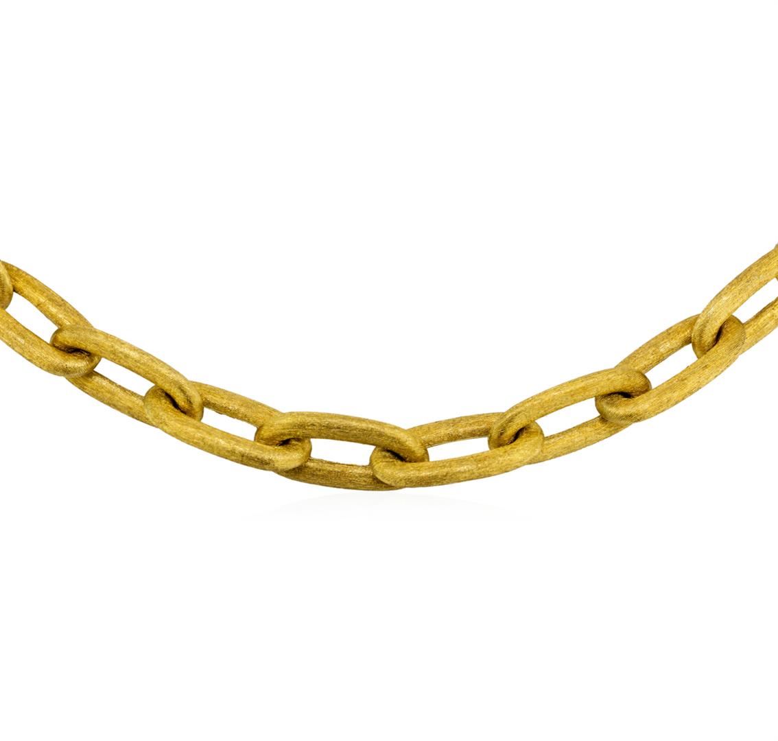 One oval link Nanis necklace featuring: 18KT yellow gold weighing 35.4 grams. The necklace measures approximately sixteen inches in length.