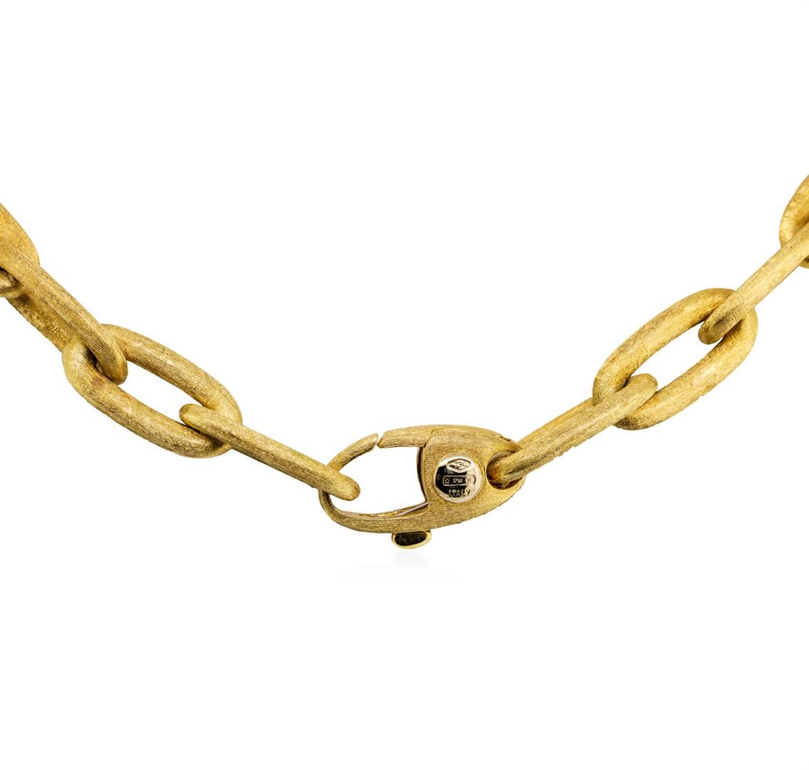 One oval link Nanis necklace featuring: 18KT yellow gold weighing 35.4 grams. The necklace measures approximately sixteen inches in length.