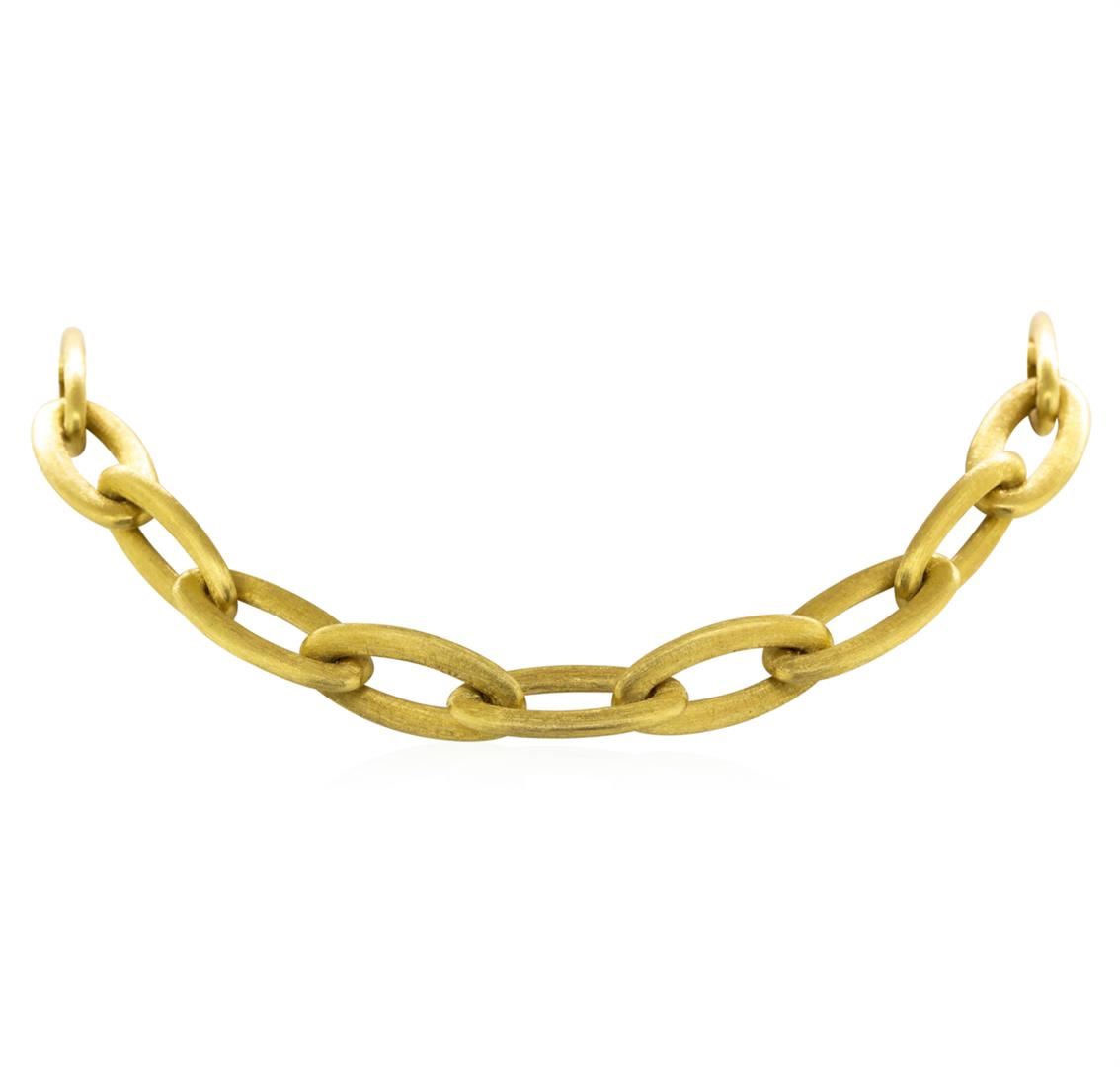 One oval link Nanis necklace featuring: 18KT yellow gold weighing 46.7 grams. The necklace measures approximately sixteen inches in length.