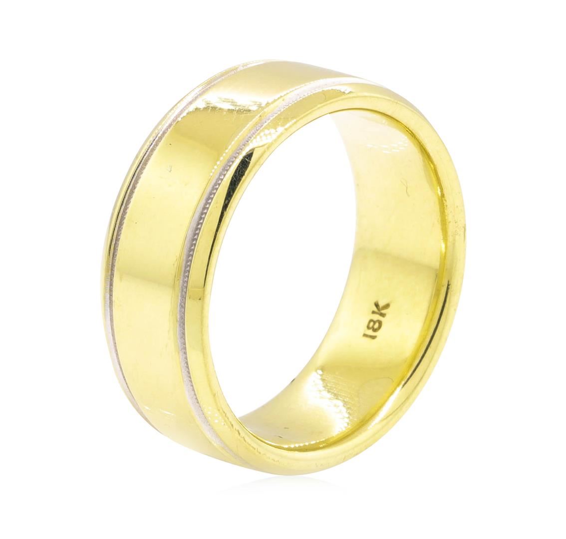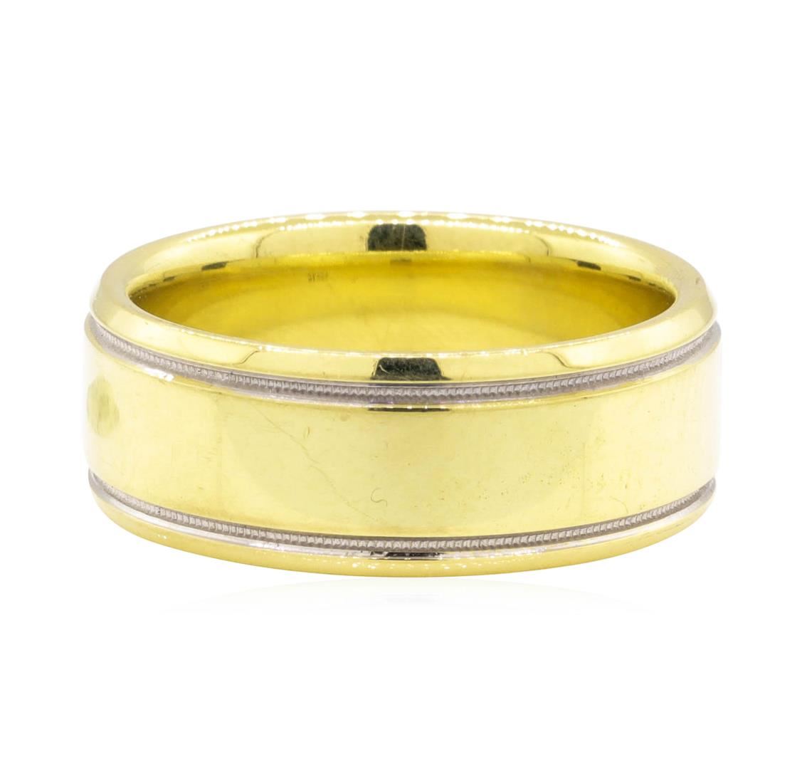 One band featuring: 18KT yellow gold with rhodium detailing weighing 17.0 grams. The band is a size 10.