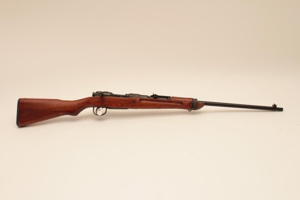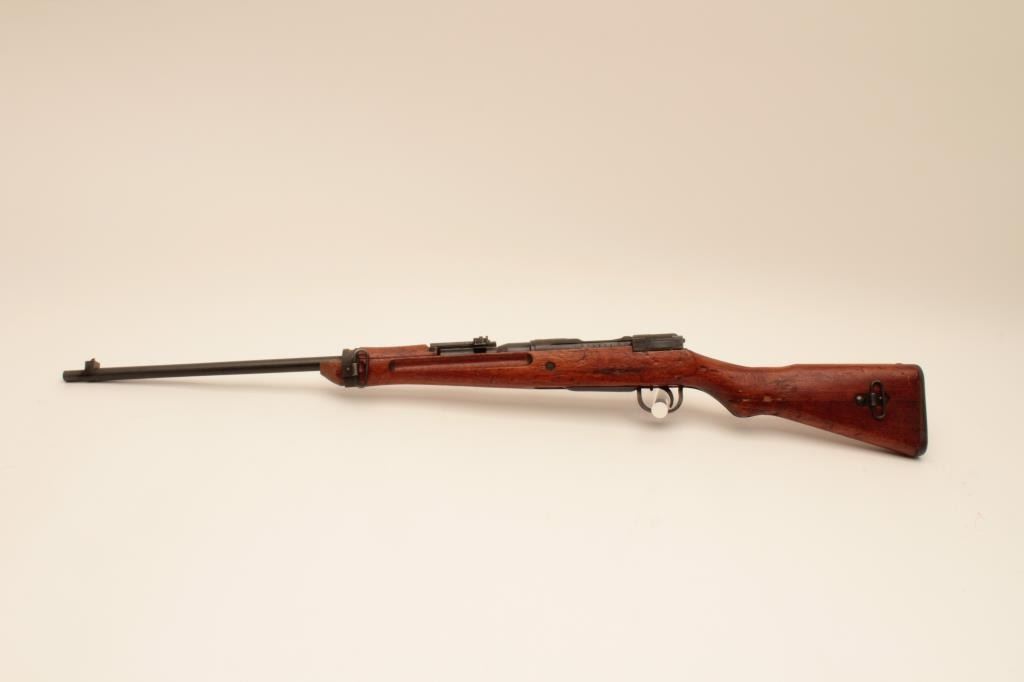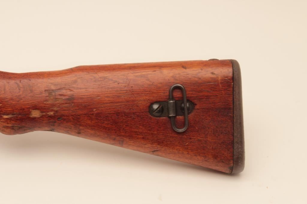 Late War Japanese Arisaka 7.7mm issue rifle with mum ground, stock cut, late front sight and rusty butt plate, S/N 88890. The bolt, internal parts and firing pin is missing along with floor plate and spring. As partsonly. Fair overall. Est.: $25-$50