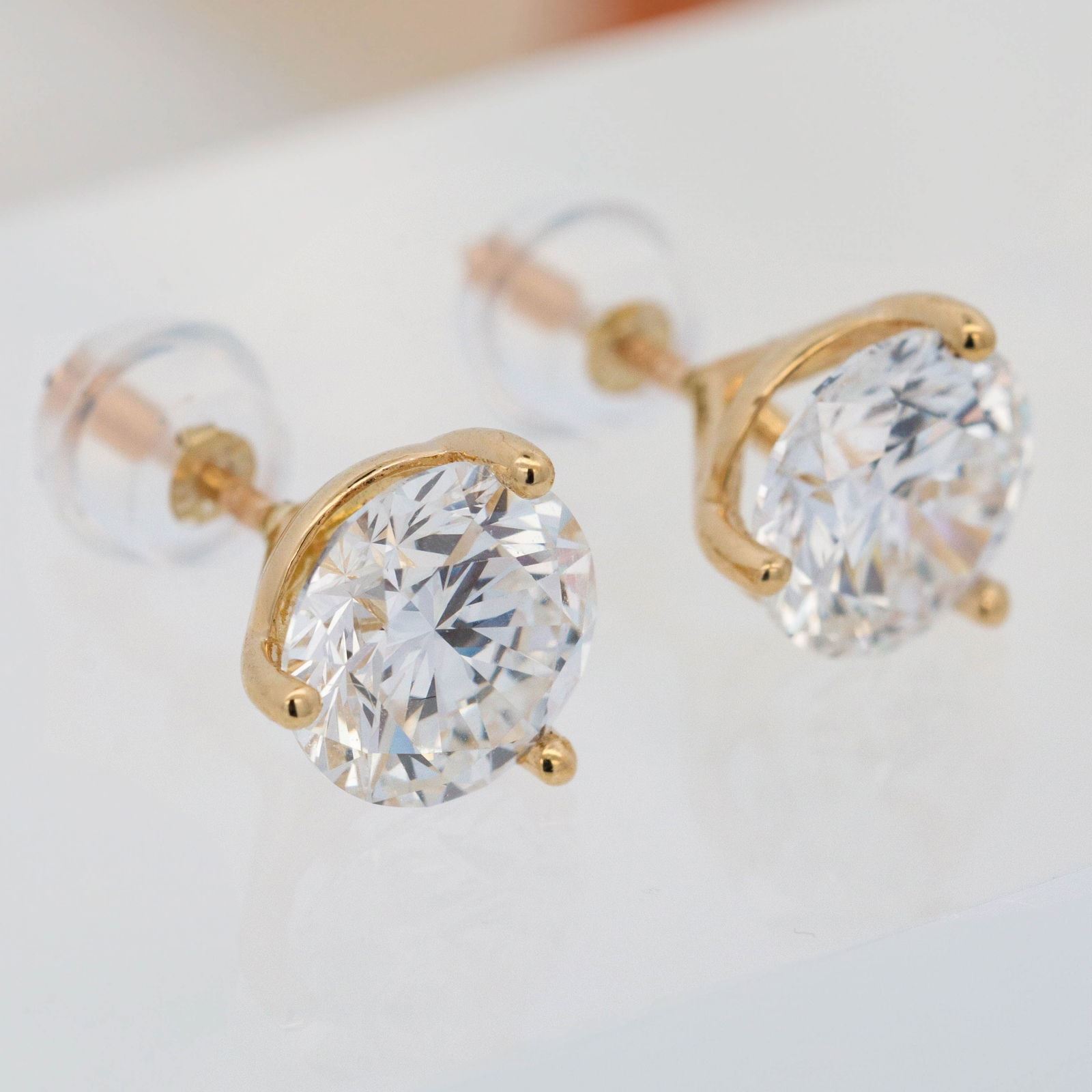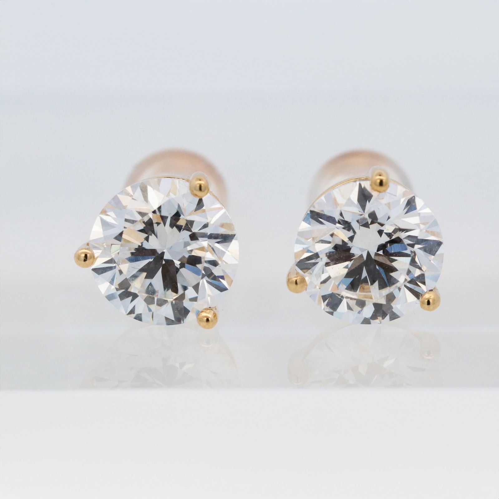 18KYG 3.00ctw 3-Prong Lab Grown Diamond Stud Earrings 1.8 grams