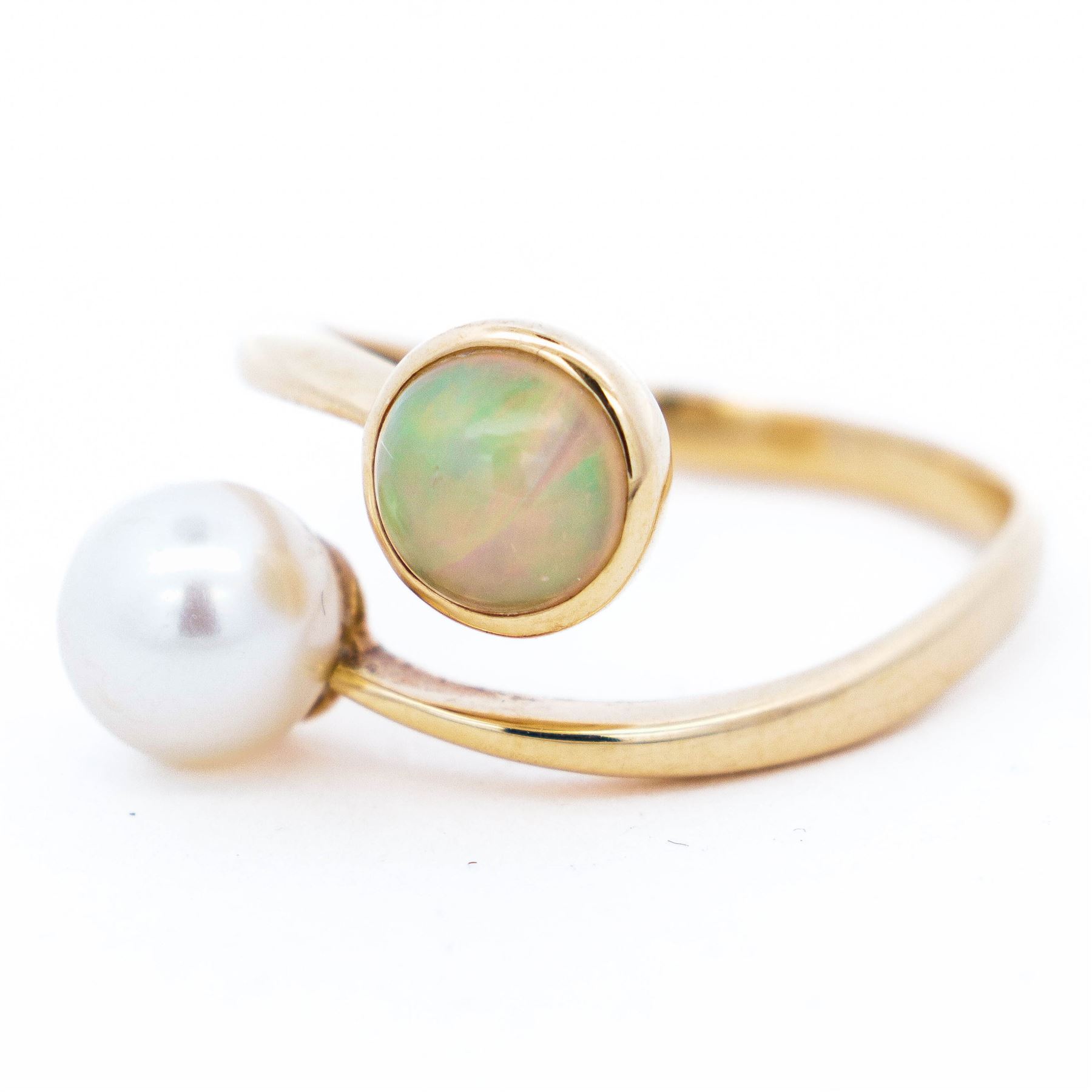18KYG .80ct Opal & amp; Pearl Toi et Moi Ring& nbsp;