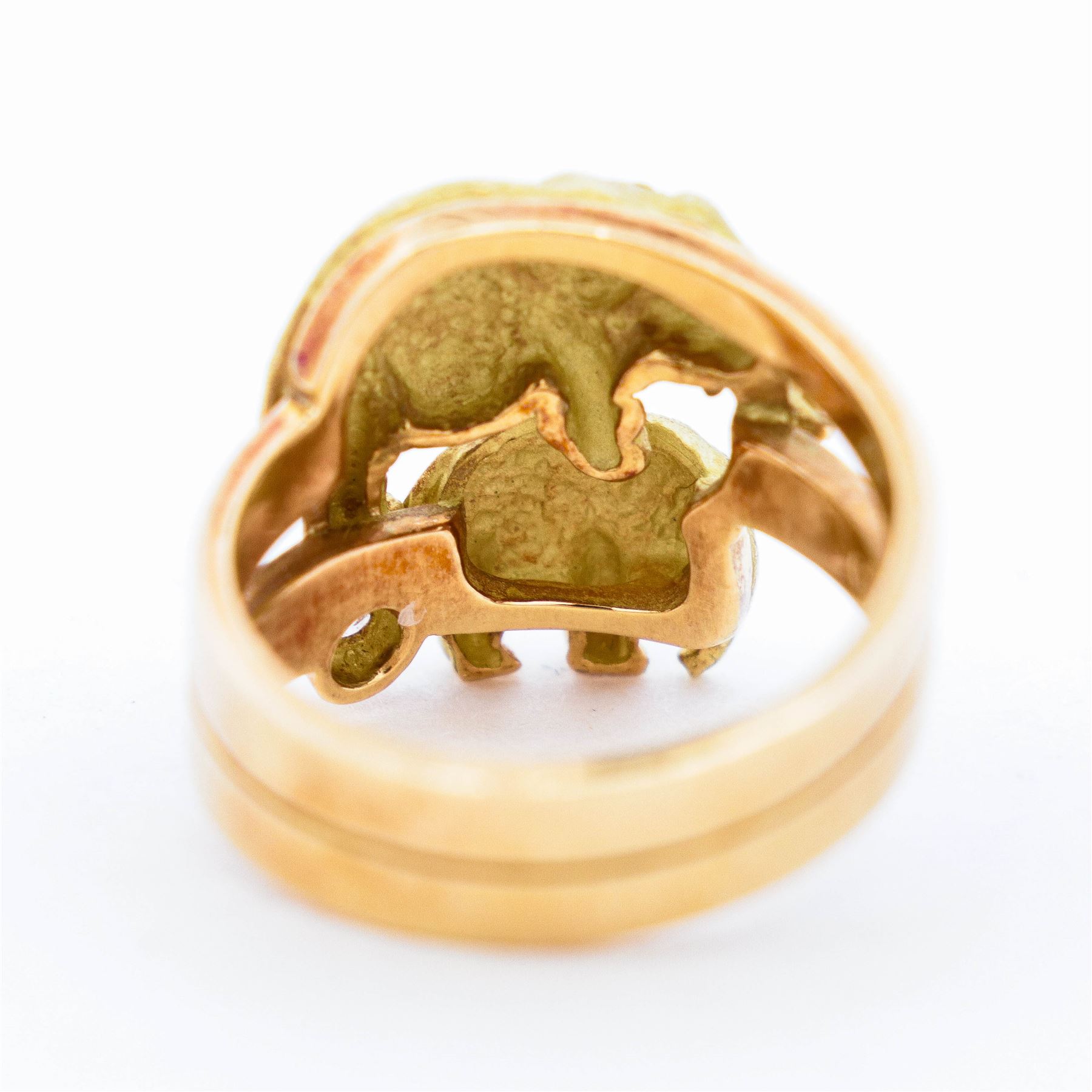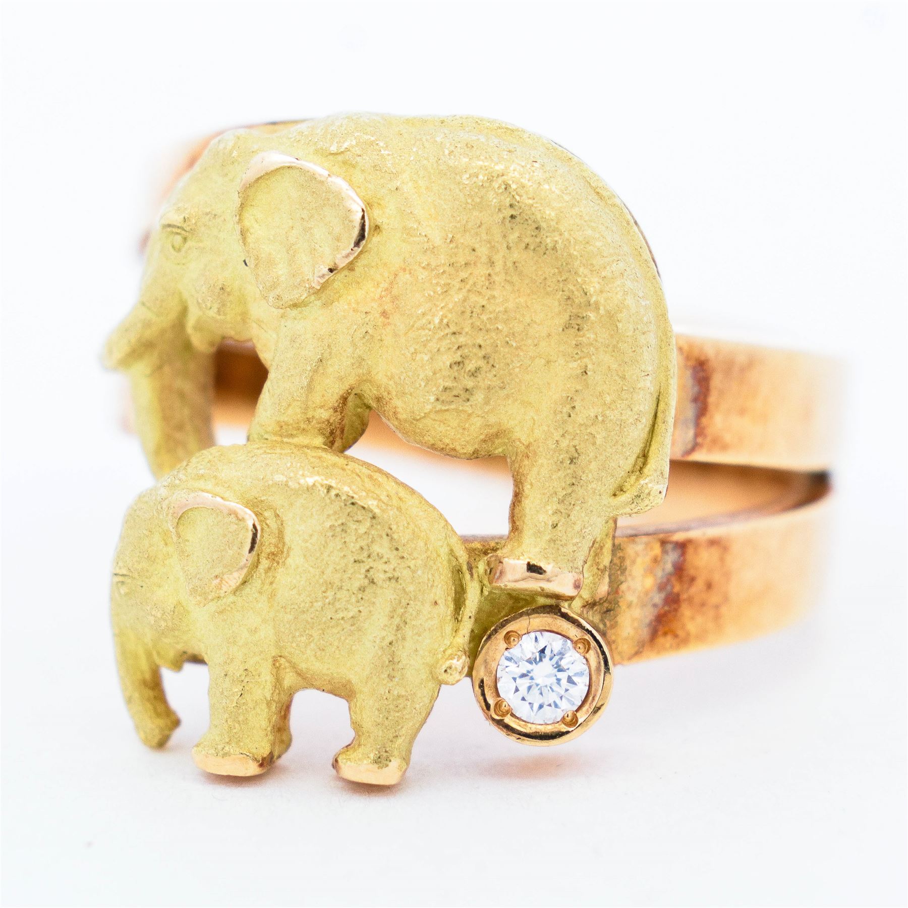 18K yellow gold ring with figural elephants. They are buddies. Size 7.& nbsp;