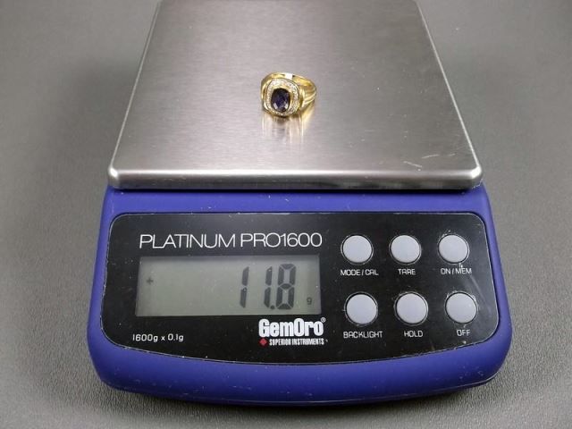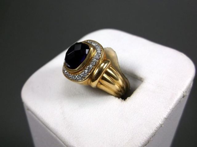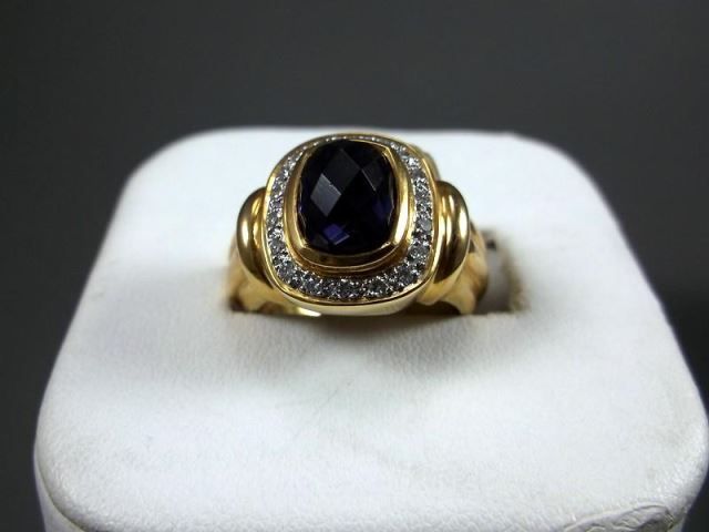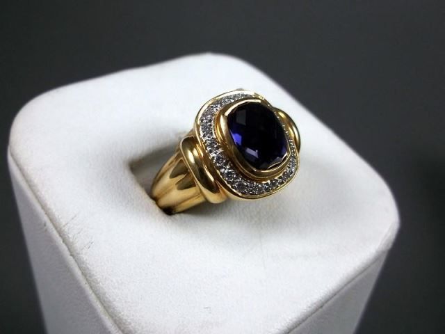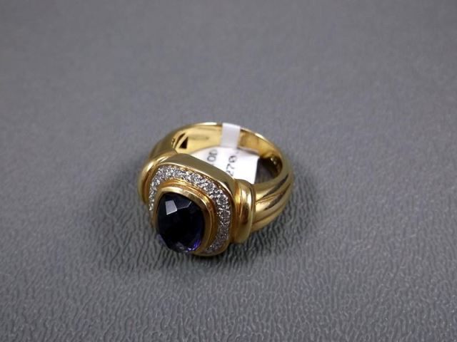 18KYG Ring w/ Large Blue Gem & Diamonds Marked CS, Size 6 3/4 Weight: 11.8 Grams Retail: $3,270.00
