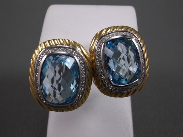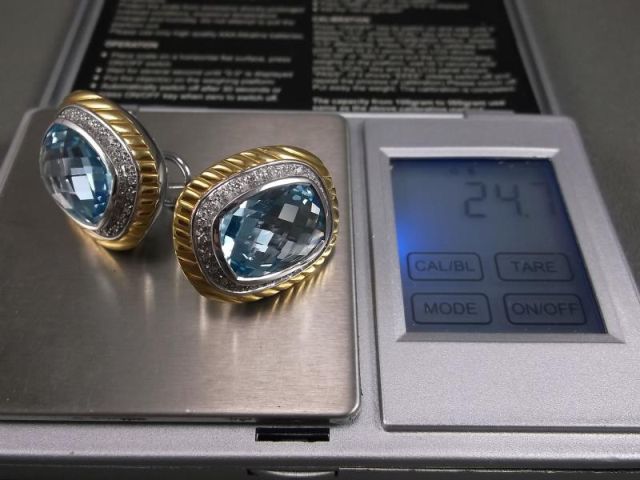 18KYG on Sterling Topaz & Diamond Earrings Marked CS Weight: 24.7 Grams Retail: $3,220.00
