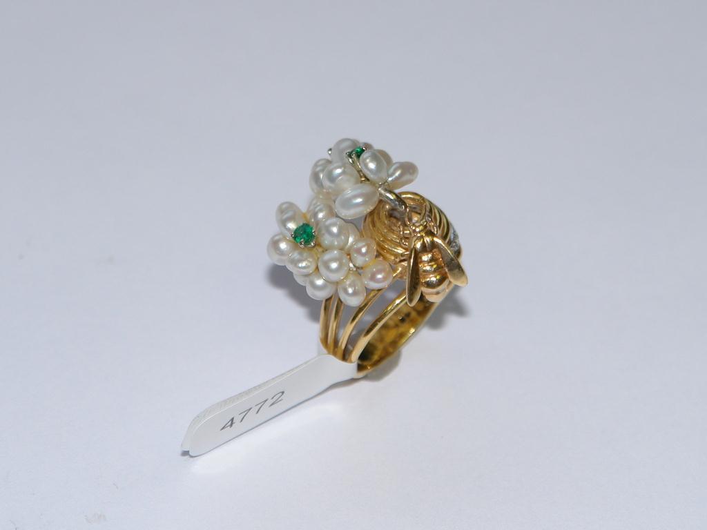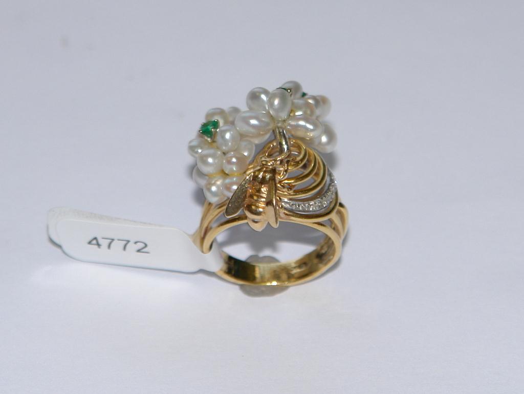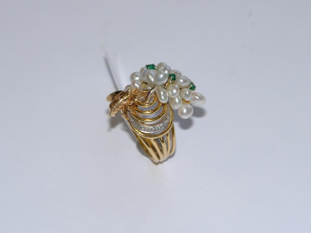 Total Retail $3,490 18Kt Yellow Gold (#1) Retail Price $3,490 18Kt Yellow Gold 18Kt Pearls & Emerald Cocktail Hand Made Ring