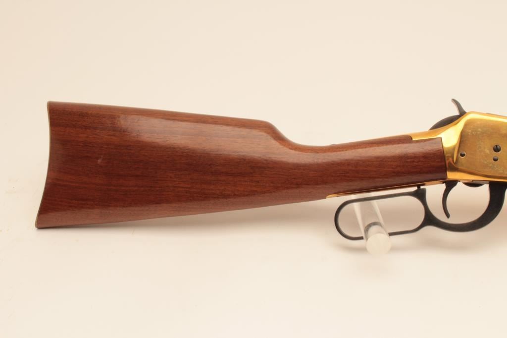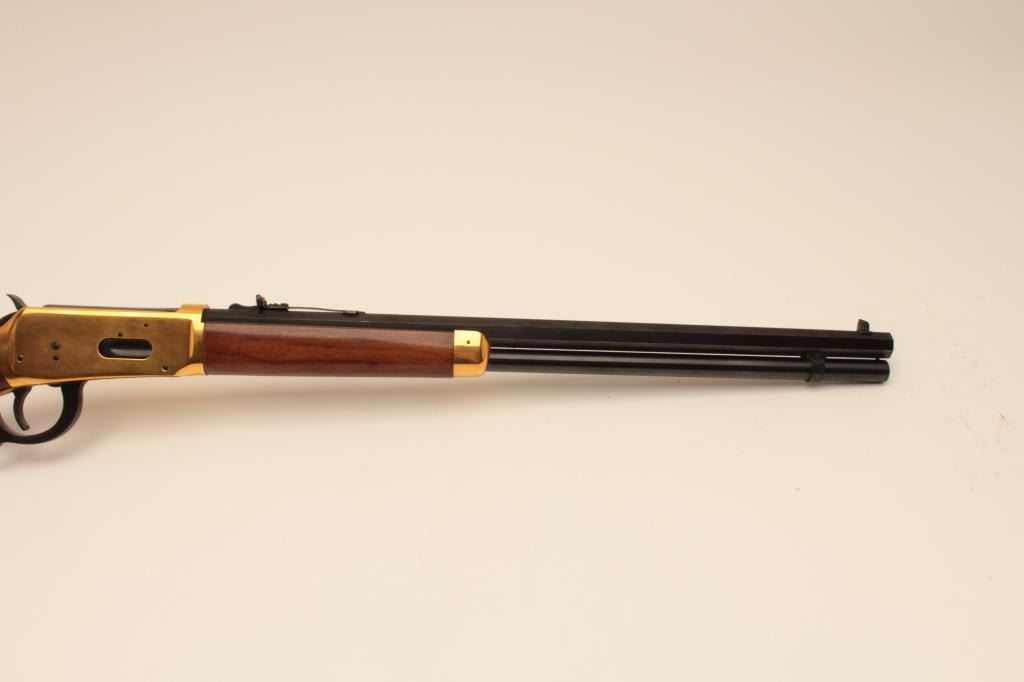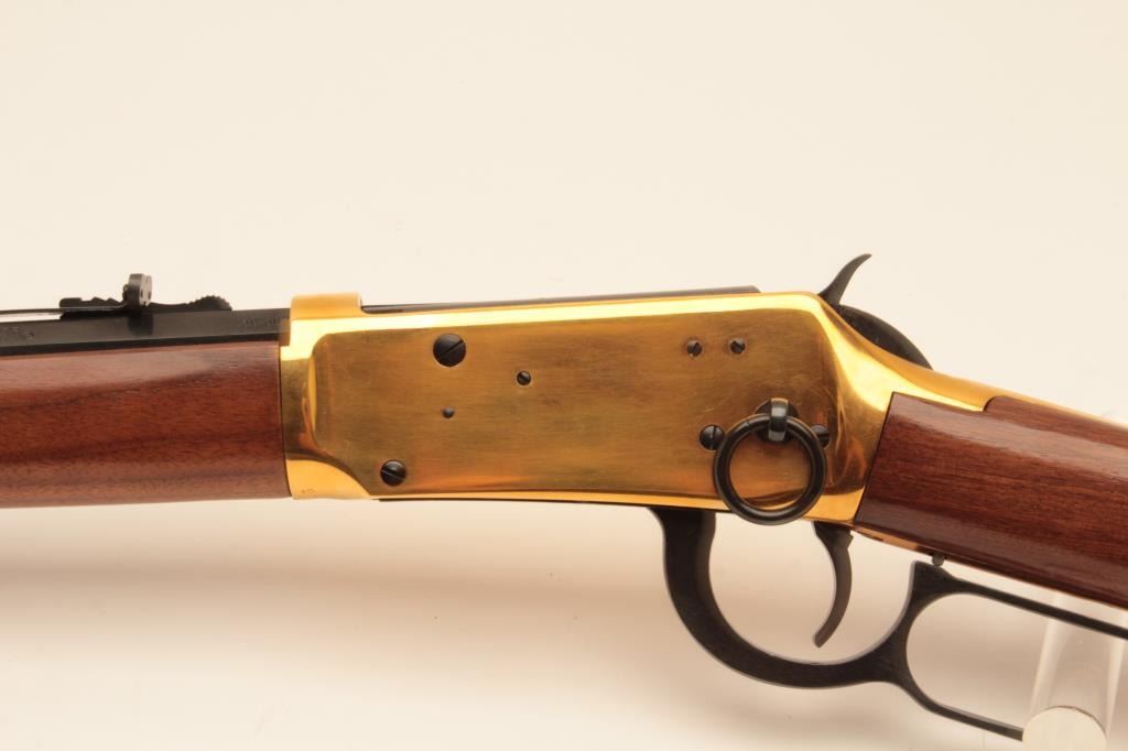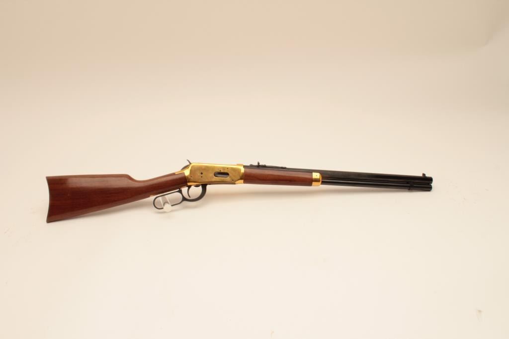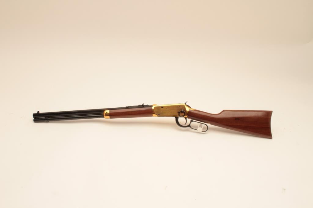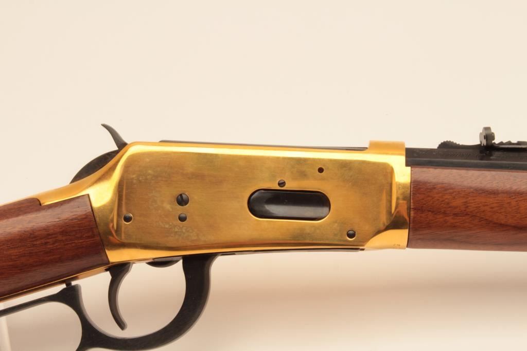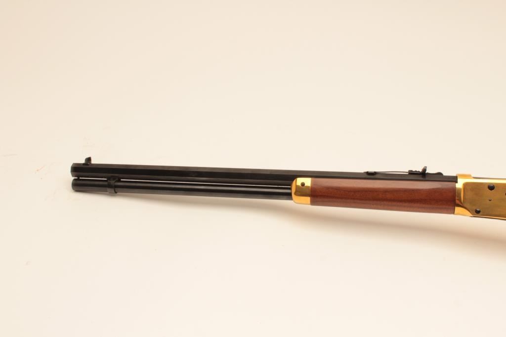 Winchester 1866 Centennial Commemorative Short Rifle in .30-30 caliber with a 20” barrel and full mag, S/N 52963. Gold plated with commemorative features and carbine ring. No box. Fine to excellent condition. Noevidence of firing. Slight storage. 97%-99% overall. Est.: $300-$600