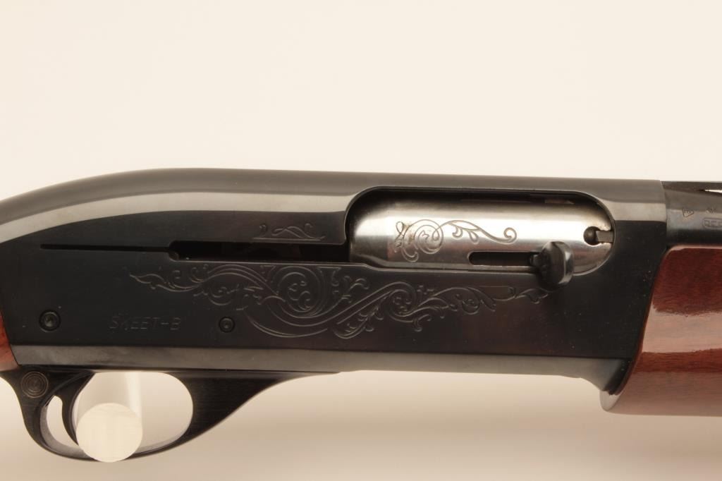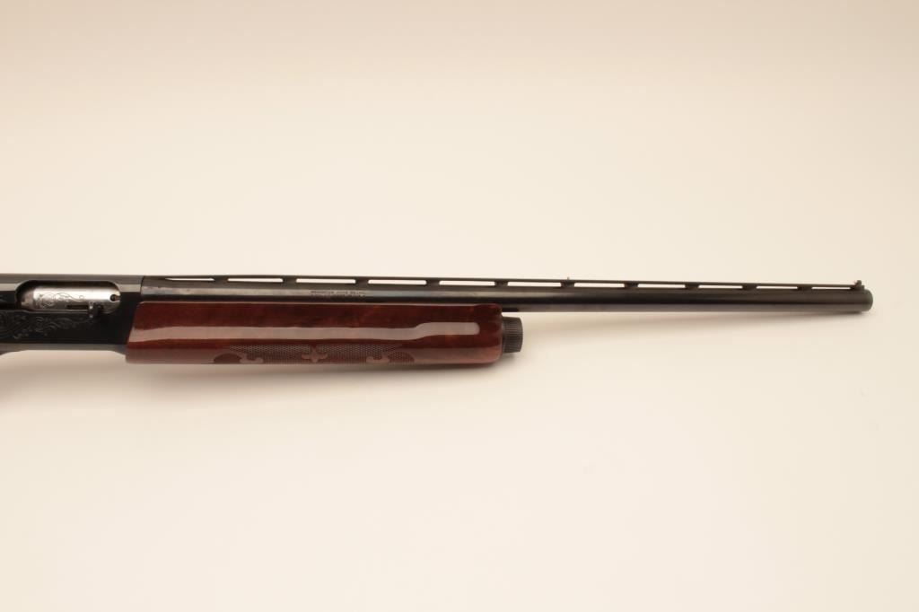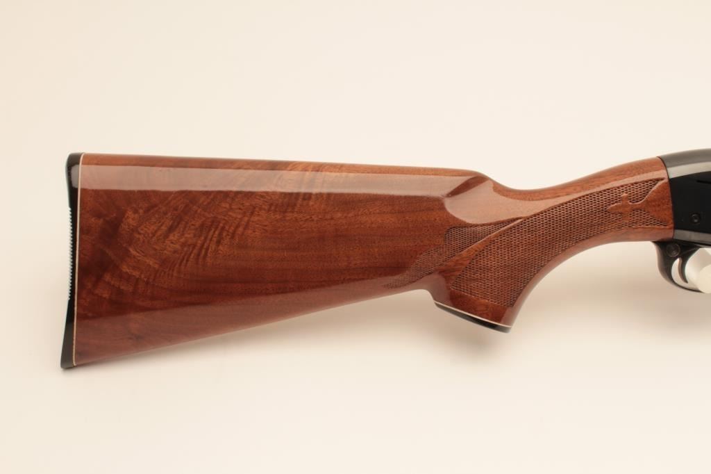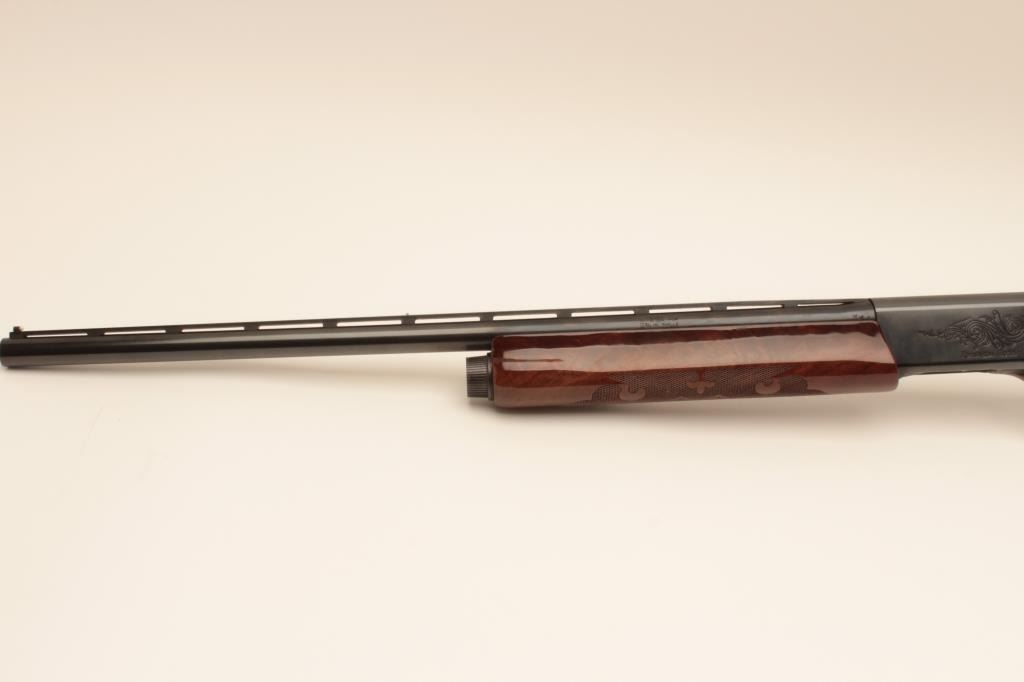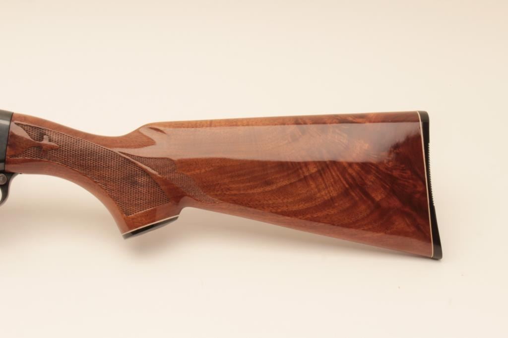 Remington Model 1100 12GASemi-Auto Shotgun with 2 barrels and canvas case, S/N M694535V. #1 barrel measures 26” with vent rib and choked full. #2 barrel measures 30” modified marked of a later production period as mattfinished. The condition is very good to almost fine overall. 96%-98%. Minor use with some slight marks in the wood. Measures 14 1/8” to the end of the plate. (Factory Dimensions). Est.: $350-$700