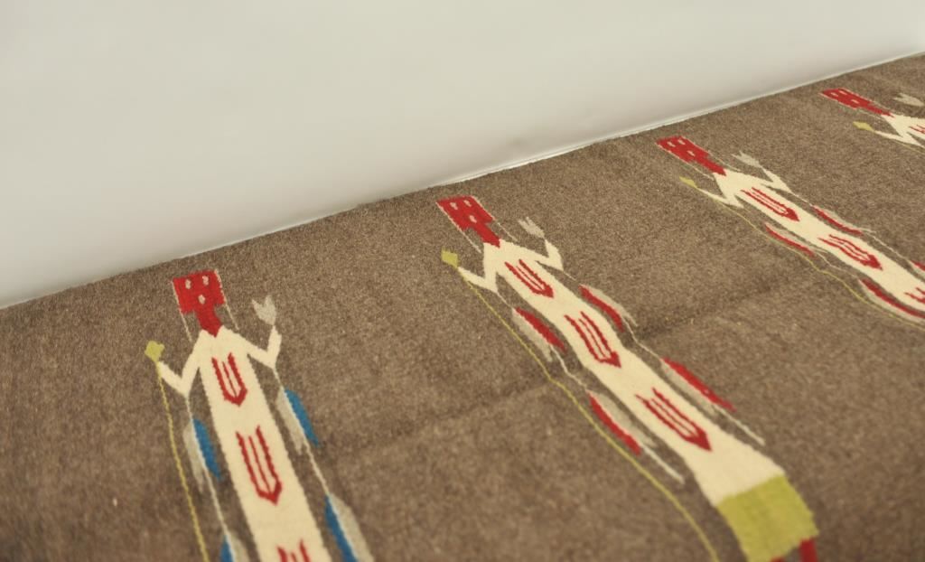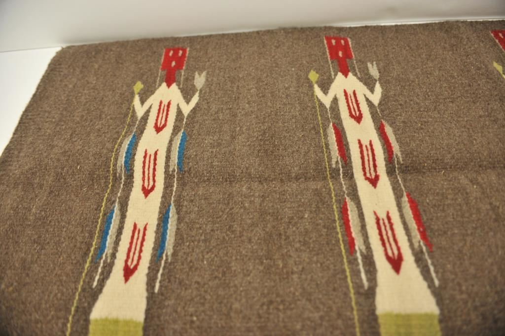 Yei Corn Dancer woven rug; approximately 66” x 29” overall; nice colors and condition. Est.: $300-$600.