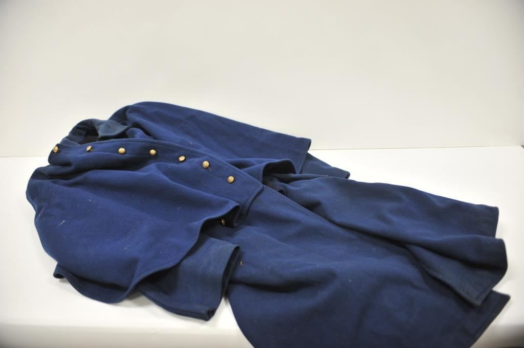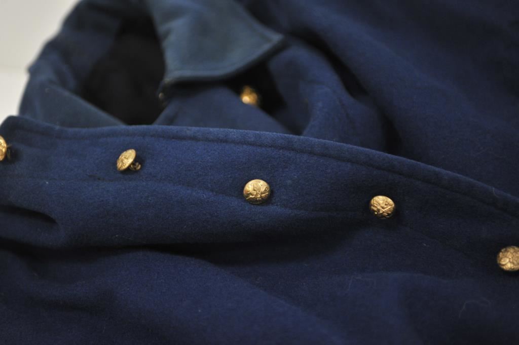Civil War style Cap Jacket with brass buttons; possibly an older reproduction, overall good condition but in need of a dry cleaning; no makers tag inside collar area; from an estate. Est.: $100-$200.