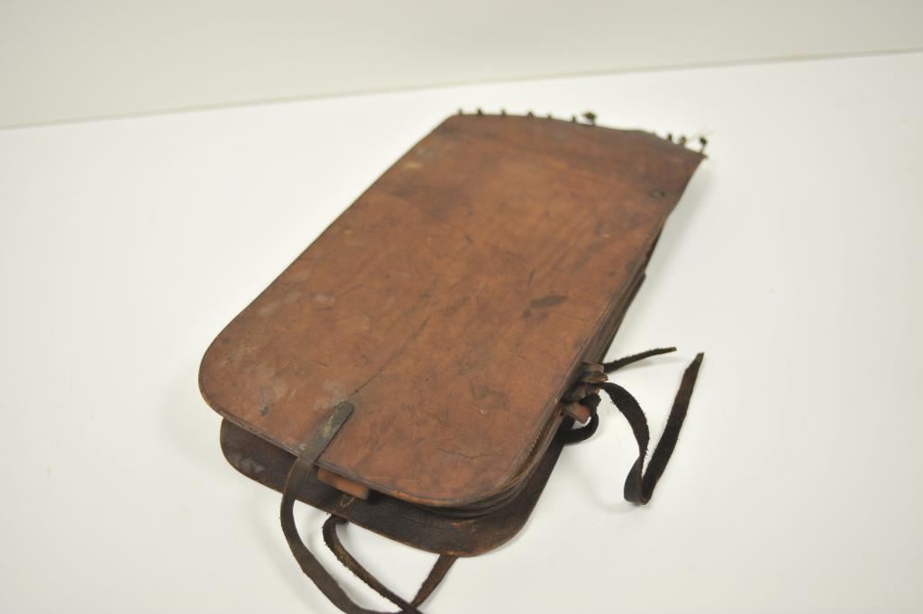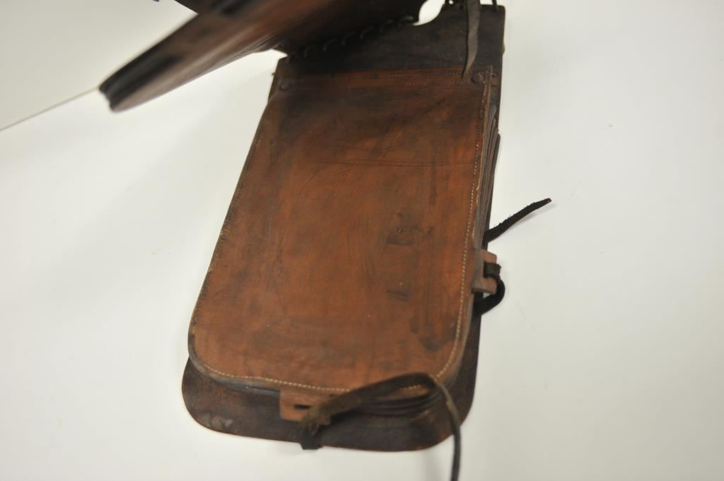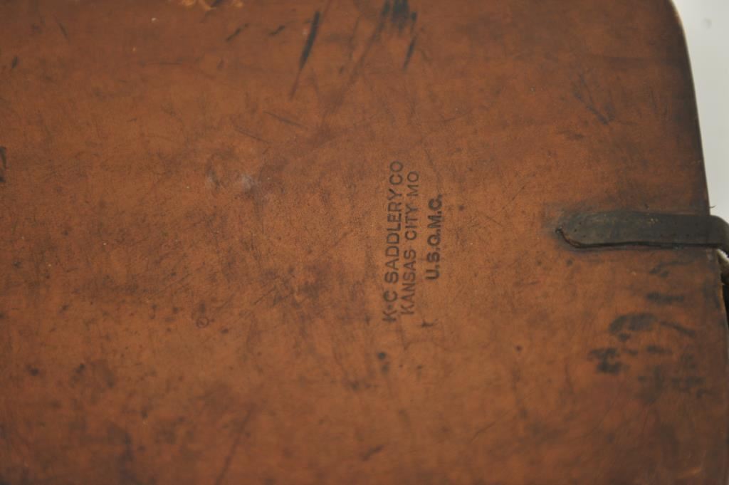 Pair of leather WW I pommel bags marked “K-C Saddlery Co./Kansas City MO/ U.S.Q.M.C.”; good overall condition. Est.: $125-$250.