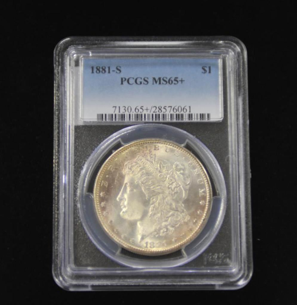 U.S. Silver Dollar dated 1881-S; PCGS graded MS65+ in holder. Est.: $125-$175.