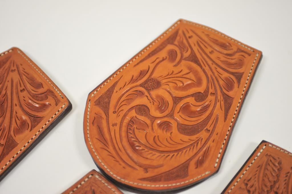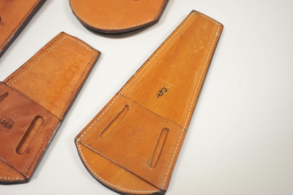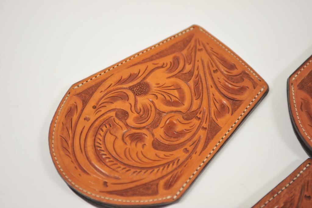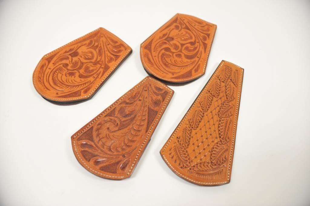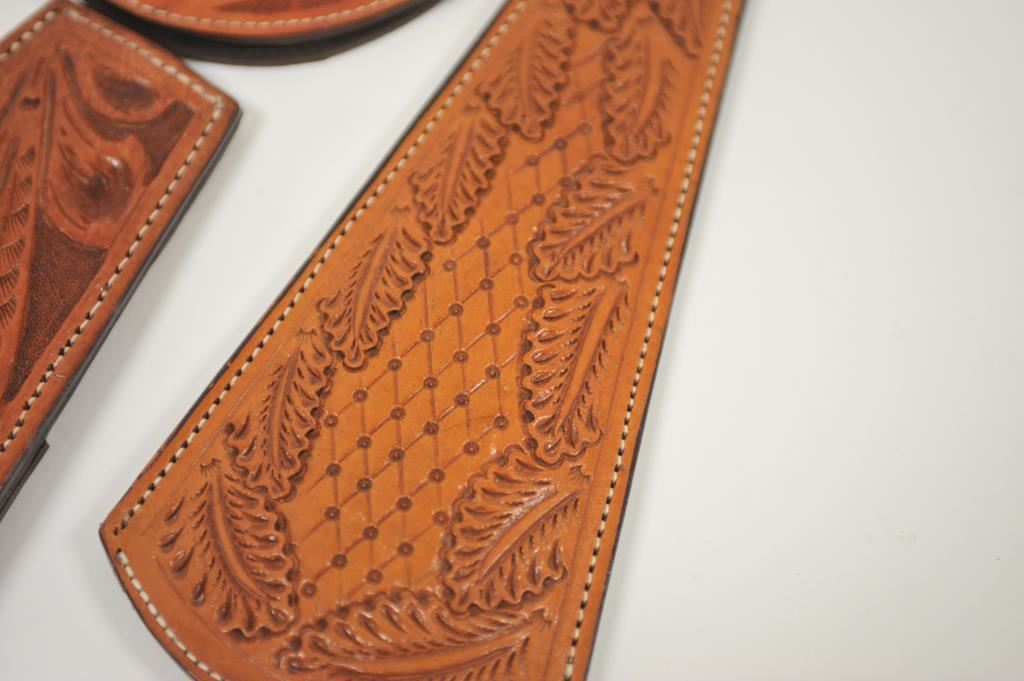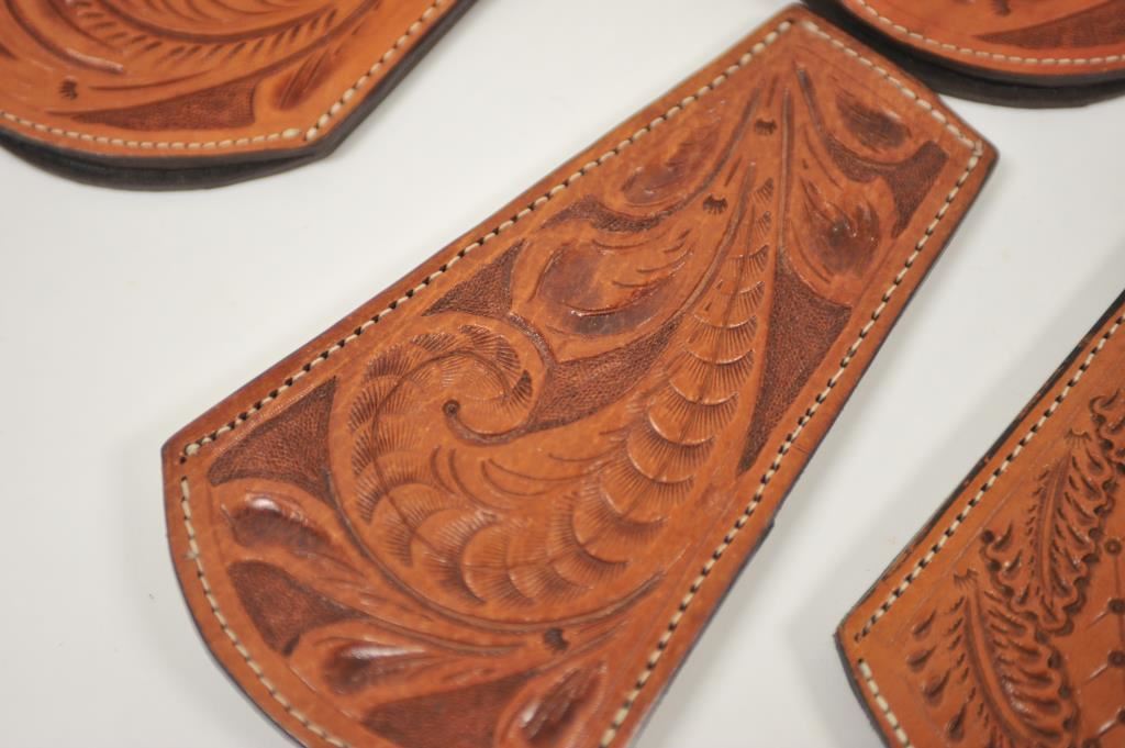 Lot of 4 tooled and carved leather holsters made in Mexico; all very good condition. Est.: $125-$175.