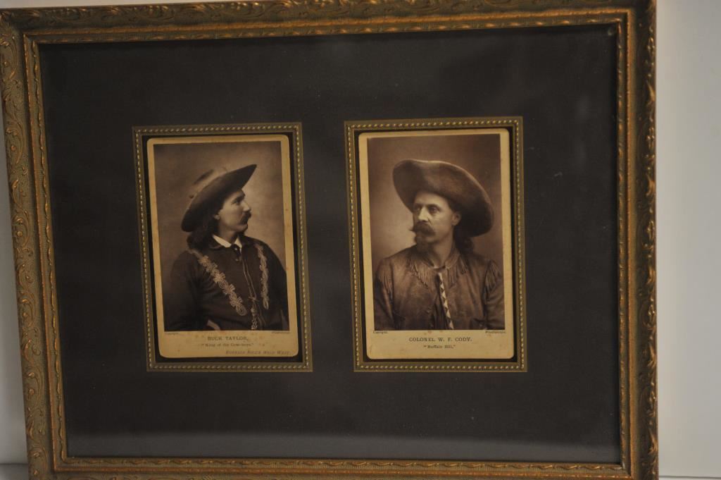 Finely framed original cabinet photos of Buck Taylor, “King of the Cow-boys” (Buffalo Bill’s Wild West) and Colonel W. F. Cody, “Buffalo Bill” both in very good condition overall with minor spots of foxing not affecting the photos; approximately 14.5” x 18.5” overall. Est.: $500-$1,000.