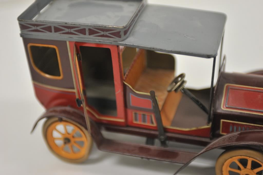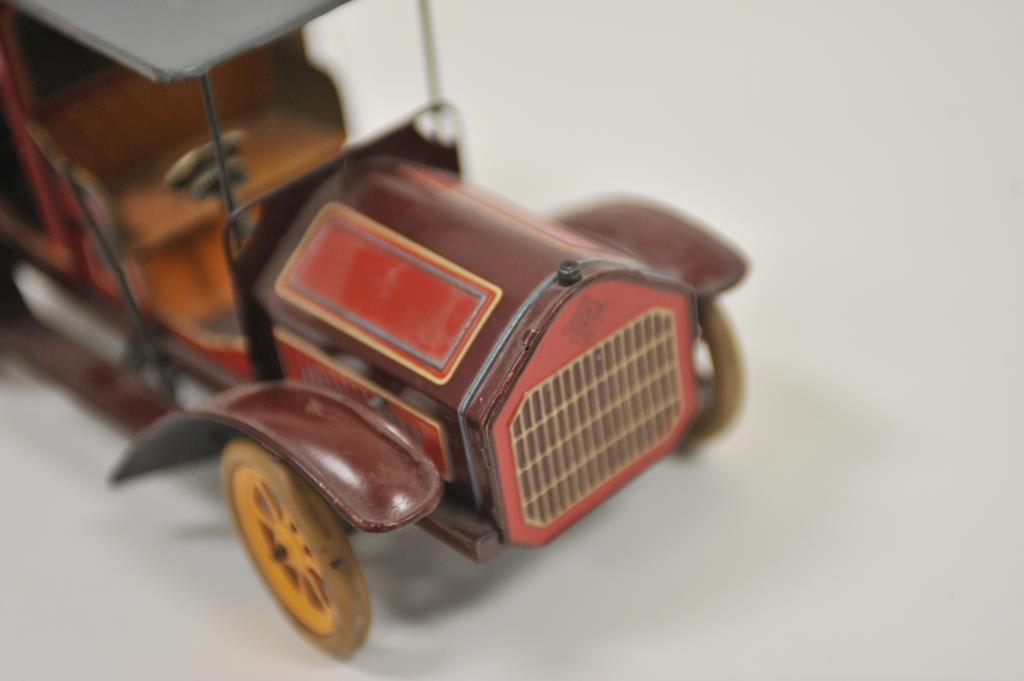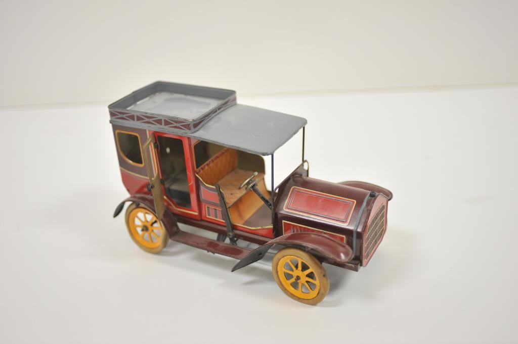 Painted tin wind-up toy coach truck with emblem on front of grill “GBN Bavaria”; overall good condition. Est.: $175-$350.