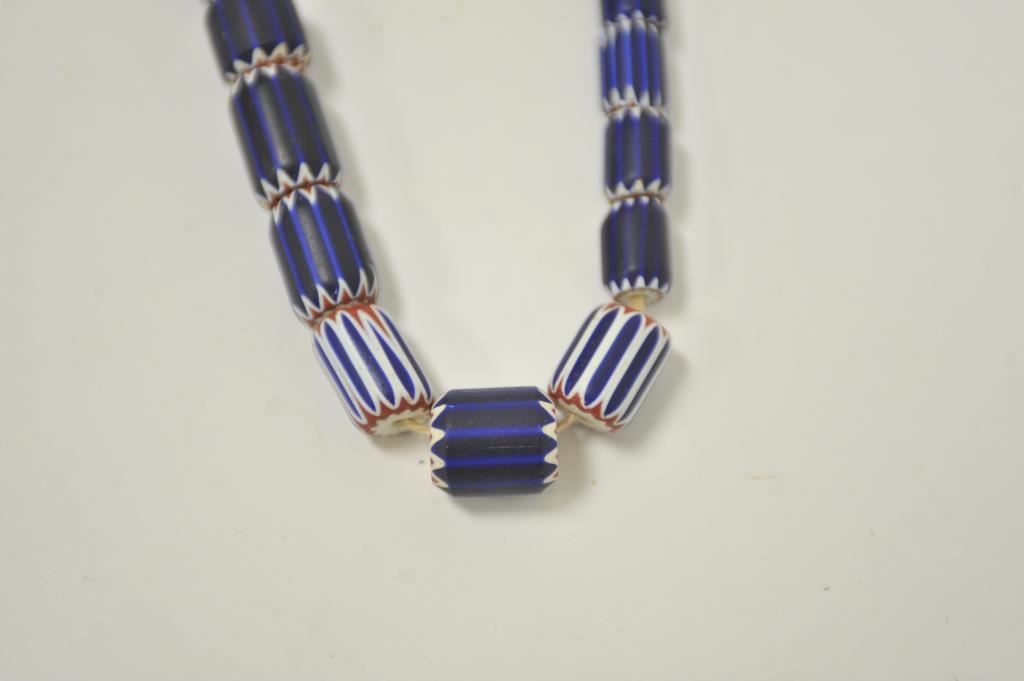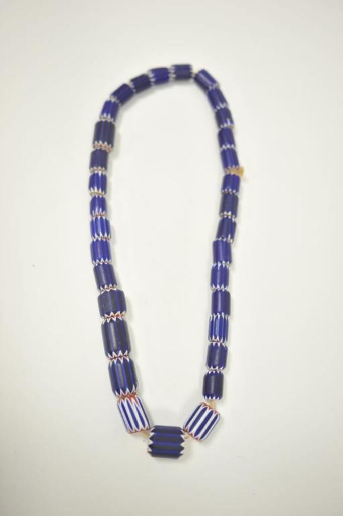 Necklace of 33 cobalt blue trade beads from the 19th to 20th Century. Est.: $300-$600.