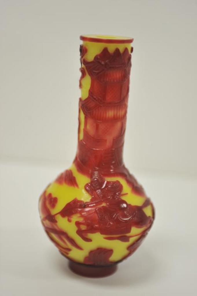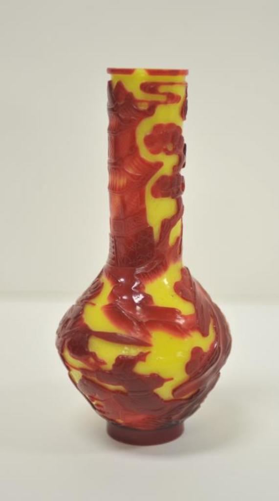 Great antique Peking glass vase, approximately 8” in height; 100-300 years old or older; fine work; estate piece. Est.: $500-$1,000.