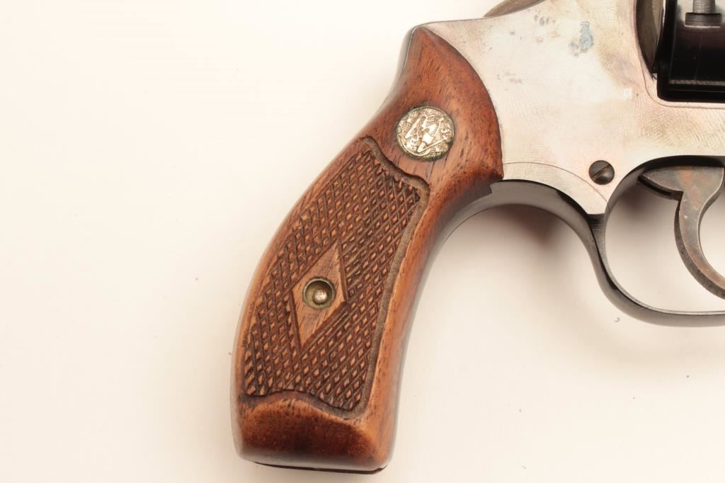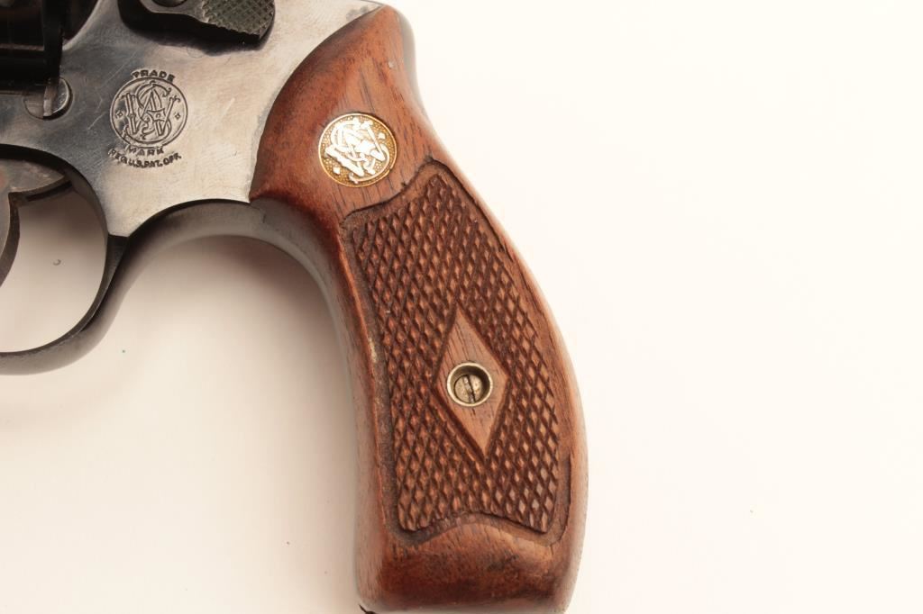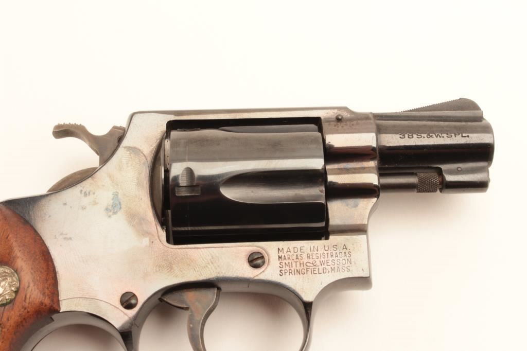 Colt Model 36 Chief’s Special revolver, .38 Special caliber, Serial #549356. The pistol is in fine overall condition with a 2” barrel. The pistol retains nearly all of its blue finish showing little use with a faint drag line on the cylinder. The hammer and trigger show beautiful, toning case hardening. The checkered wood medallion grips are in very good condition with sharp checkering. The bore is good, the action is crisp and the markings are sharp. Est.: $350-$700. (C+R).