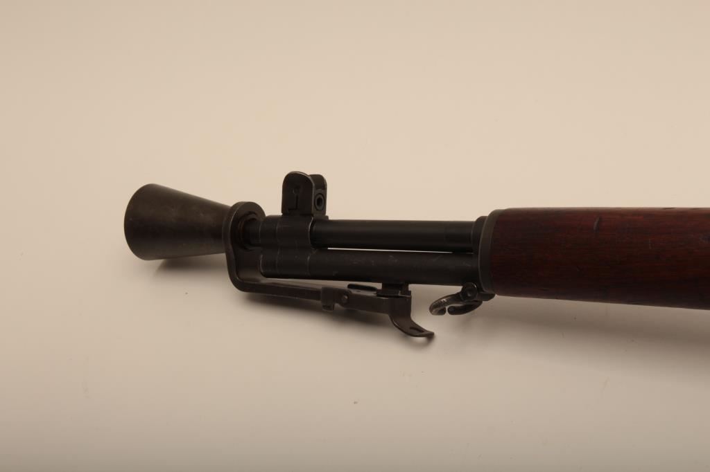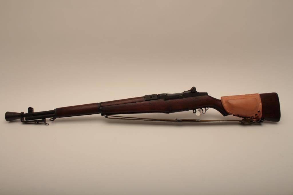 US Springfield M1D Garand rifle, .30 caliber, Serial #4292238. The rifle is in very good overall condition with a 24” barrel with an M2 flash hider added. The metal surfaces retain nearly all of their military finish with only light handling marks. An M84 scope base has been added as part of a Korean War era re-build. The smooth wood stock is in very good condition with small mars, compressions and storage marks. The barrel is marked, “SA” and dated 2-53. There is a Circle P cartouche behind the trigger guard. The butt stock includes sling swivels, a leather lace up cheek piece marked, “MRT” and ends with a checkered steel butt plate with trap. The bore is very good, the action crisp and markings are sharp on this desirable M1 sniper rifle. The lot includes the CMP Certificate of Authenticity indicating the rifle was delivered on August 16, 1999. Est.: $2,000-$4,000. (C+R).