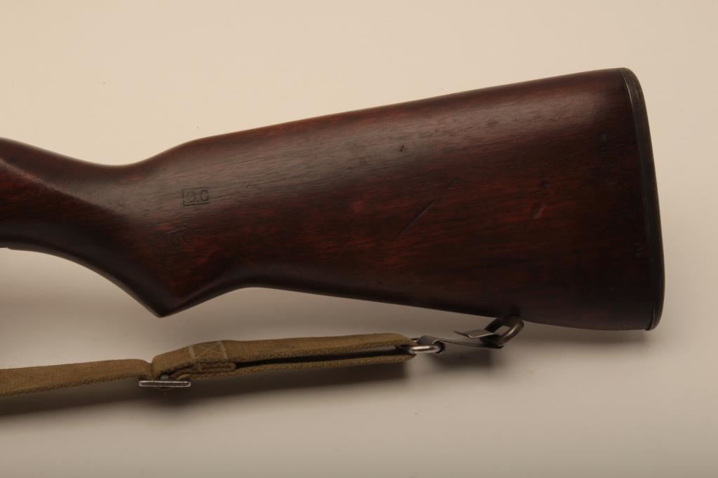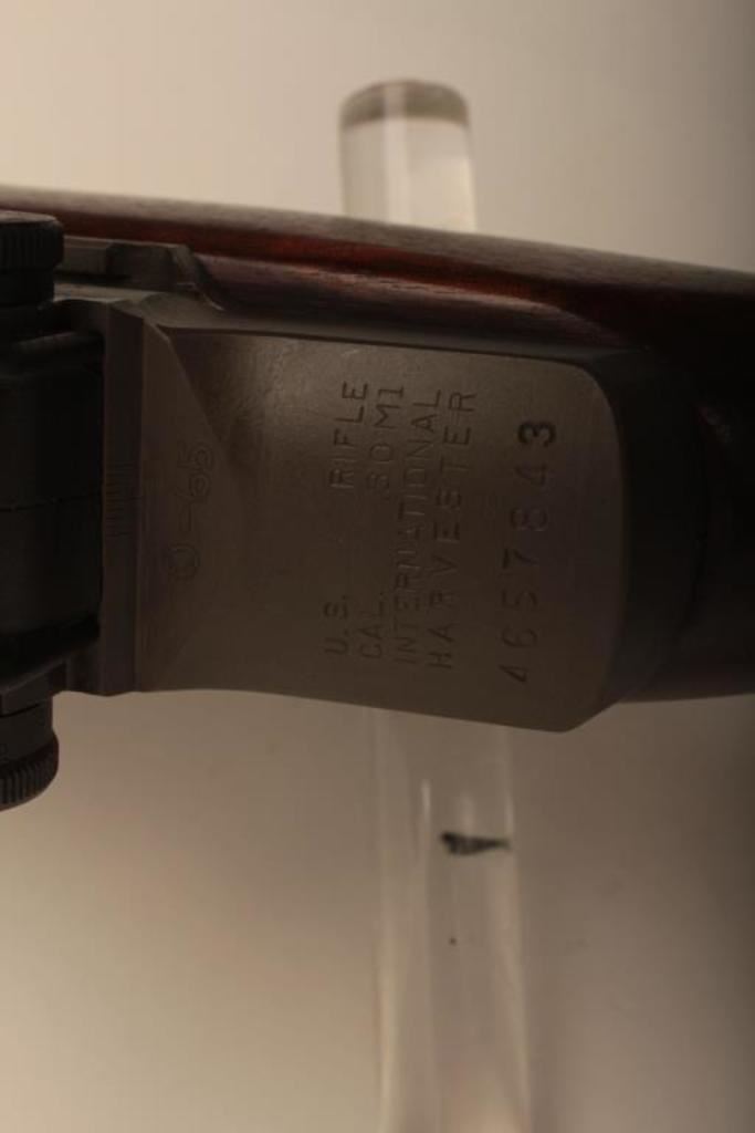 US International Harvester M1 Garand rifle, .30 caliber, Serial #4657843. The rifle is in very good overall condition with a 24” barrel. The metal surfaces retain the majority of their original military finish with wear at the muzzle and areas of light surface erosion. The smooth wood stock is in good condition with small mars and compressions consistent with service use. The barrel is marked, “LMR” and dated 7-53. The butt stock features multiple cartouches. The butt stock includes sling swivels, an OD green canvas sling and ends with a checkered steel butt plate with trap. The bore is very good, the action crisp and markings are sharp on this desirable Garand by the IHC. The lot includes the CMP Certificate of Authenticity indicating the rifle was delivered on August 24, 2004. Est.: $800-$1,600. (C+R).