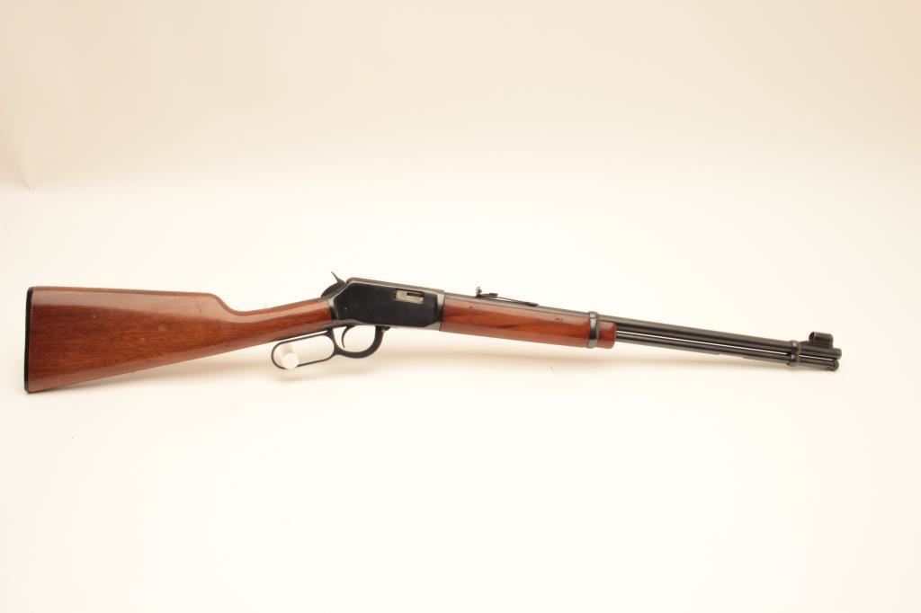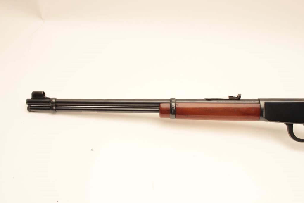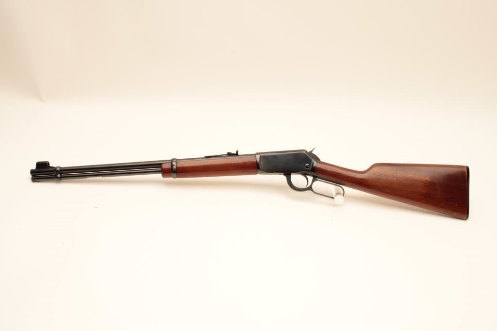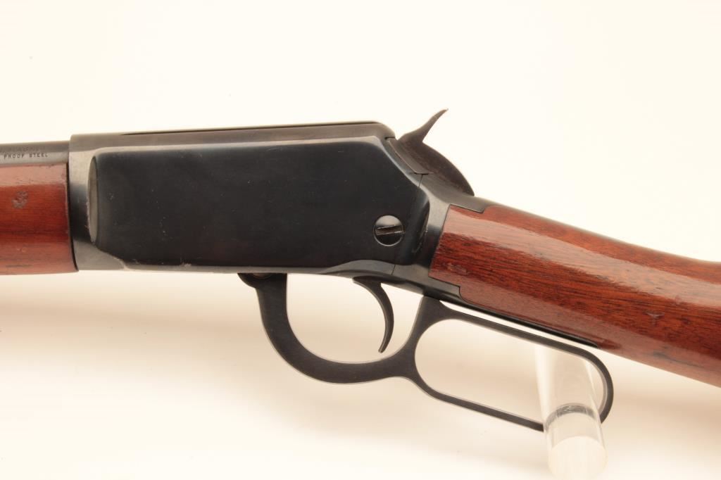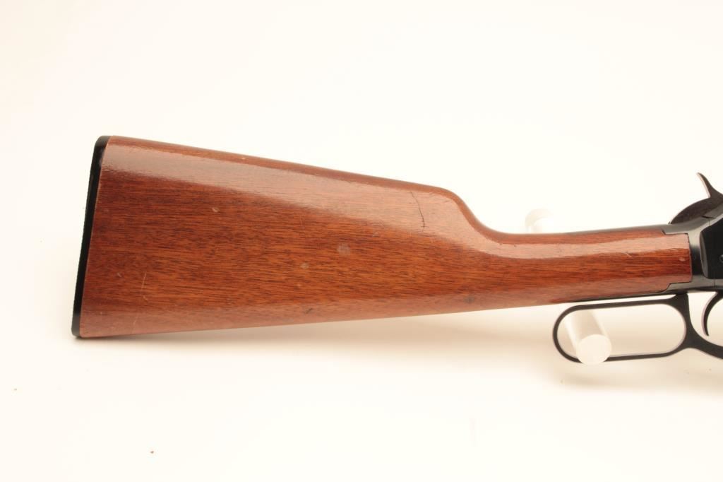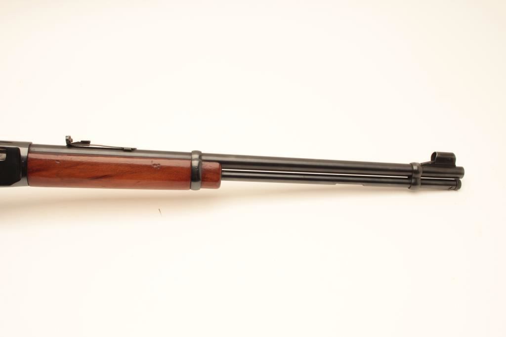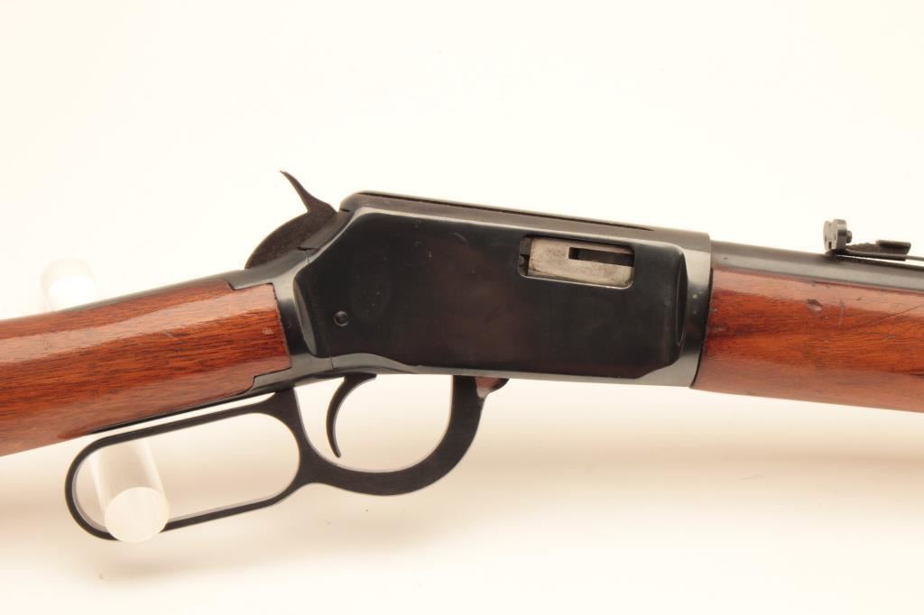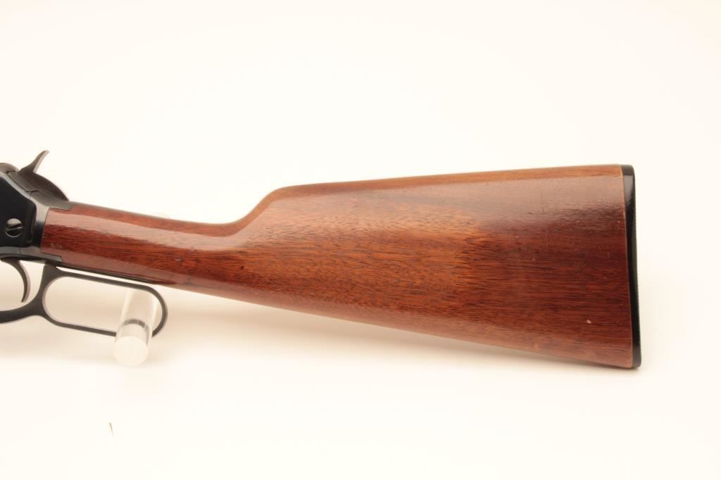 Winchester Model 9422 lever action rifle, .22 Winchester Magnum caliber, Serial #F179614. The rifle is in very good overall condition with a 20” round barrel. The metal surfaces retain nearly all of their blue finish with some loss of finish at the muzzle and small scratches consistent with carry and use. The smooth wood stocks are in good condition with small mars and compressions. The butt stock ends with a checkered plastic Winchester marked butt plate. The bore is good, the action is crisp and markings are sharp on this desirable Winchester. Est.: $600-$1,200. (Modern).