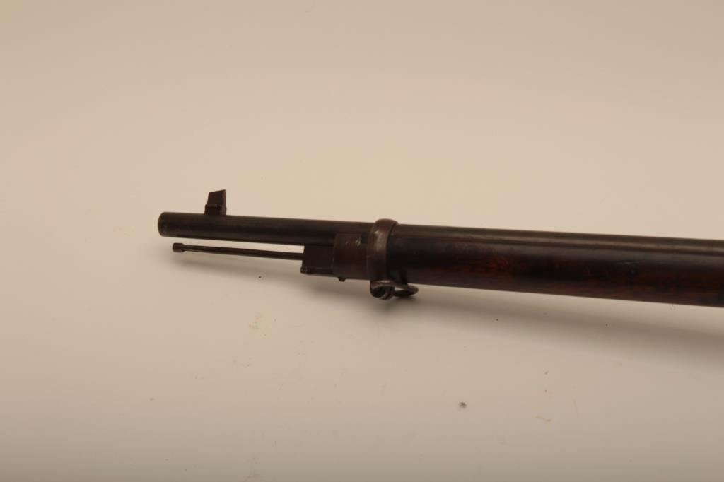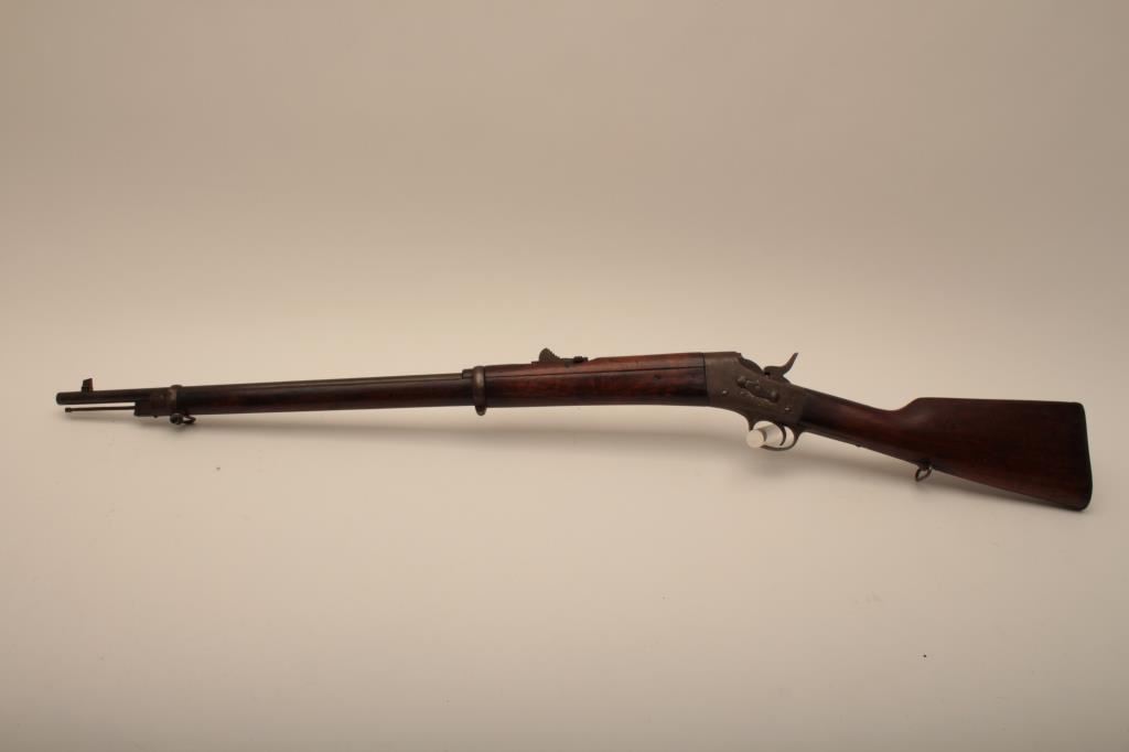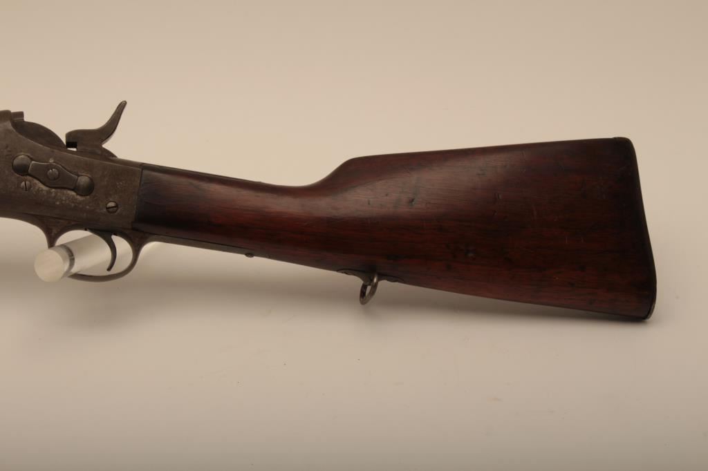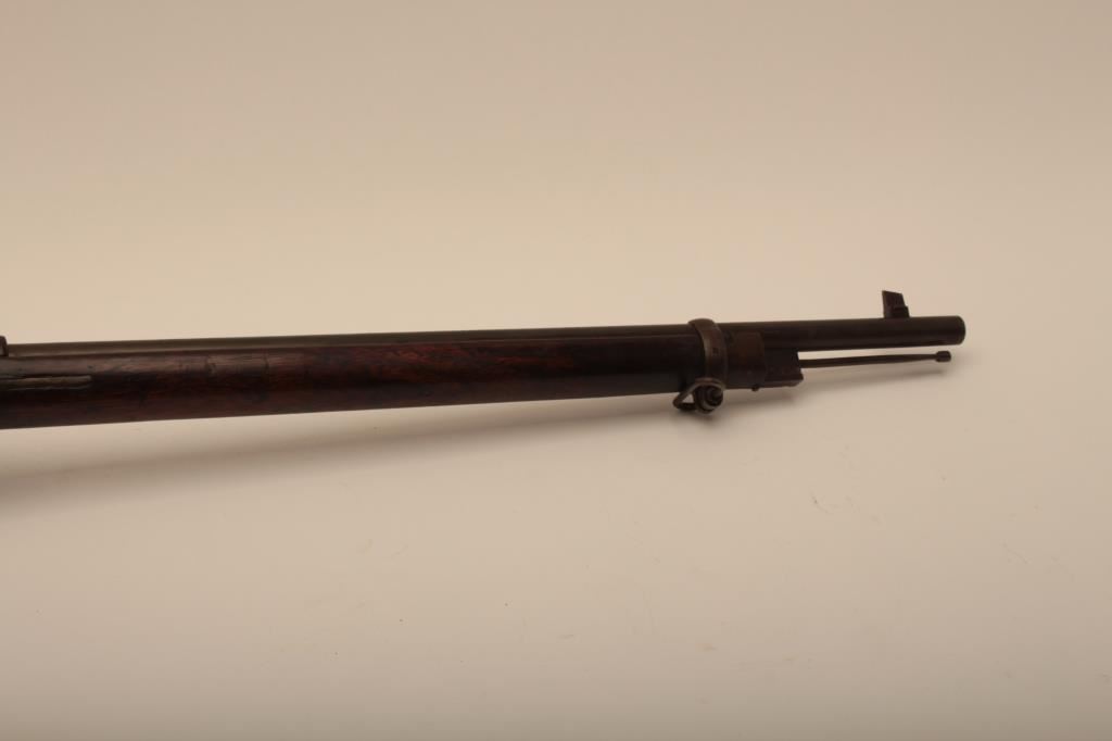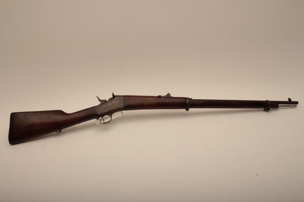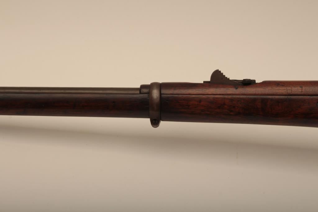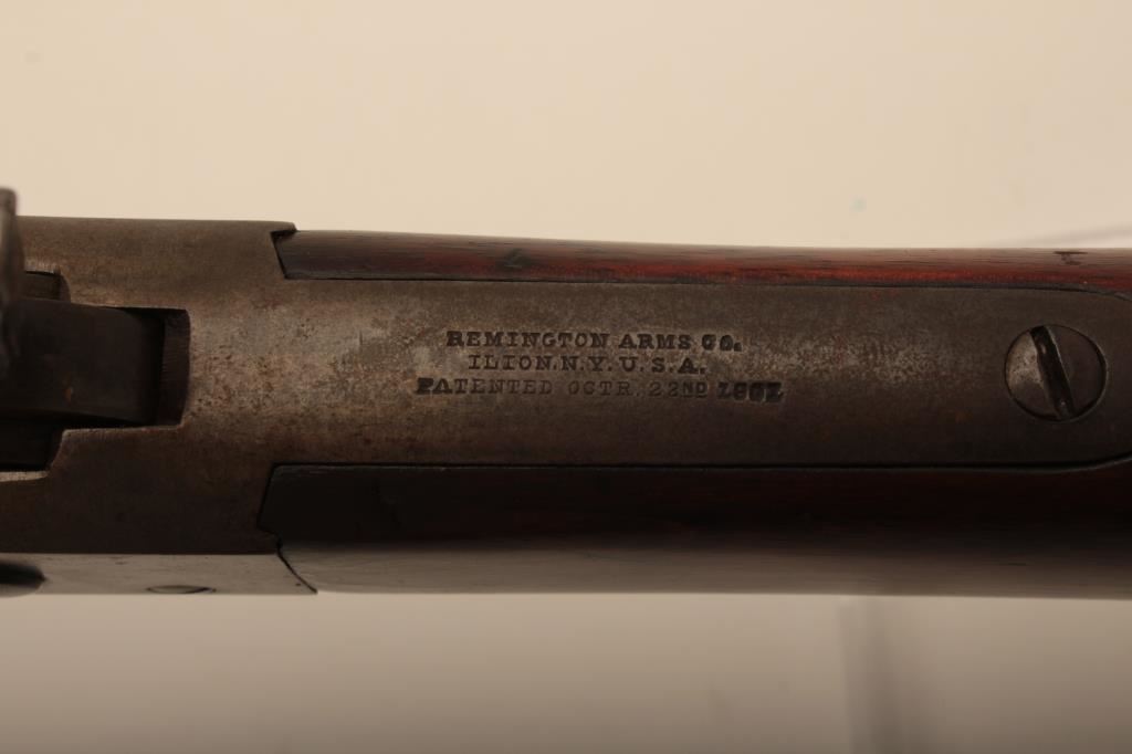 Remington 1901 Rolling Block single shot rifle, 7mm caliber, 30” barrel, blued and case hardened finish, wood stocks, no visible S/N; overall good condition with dark patina to metal surfaces; slight silver tone to protected areas of receiver, good bore, crisp action, good markings and wood. (C&R). Est.: $250-$500.