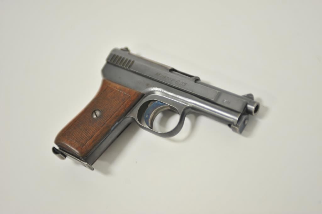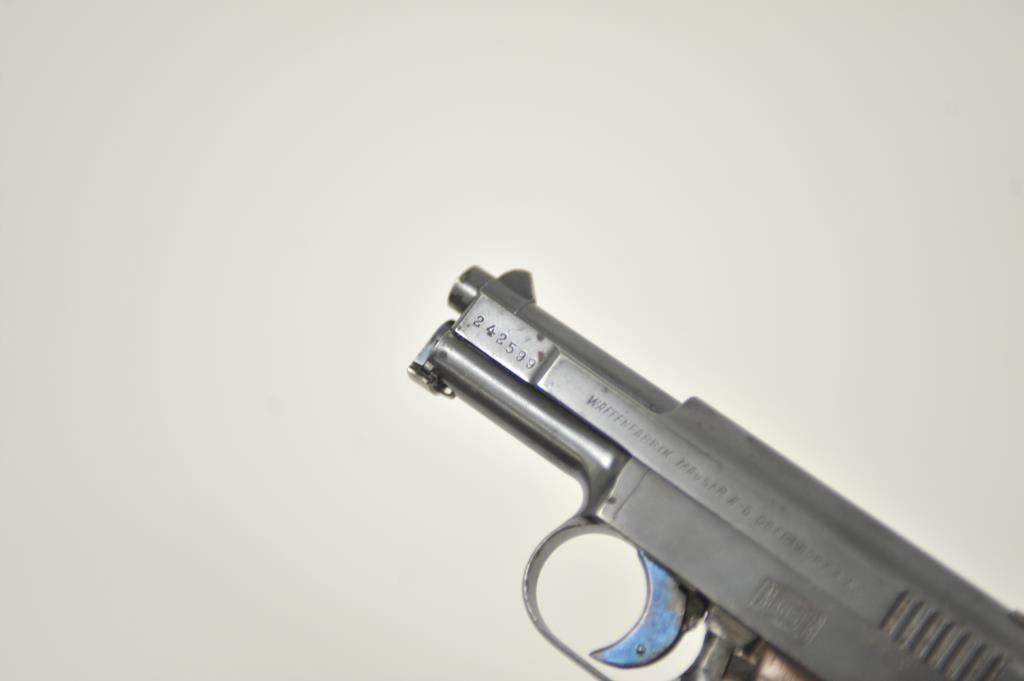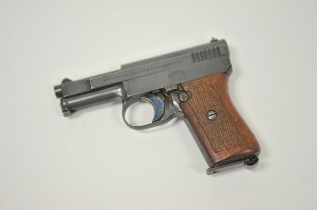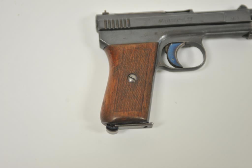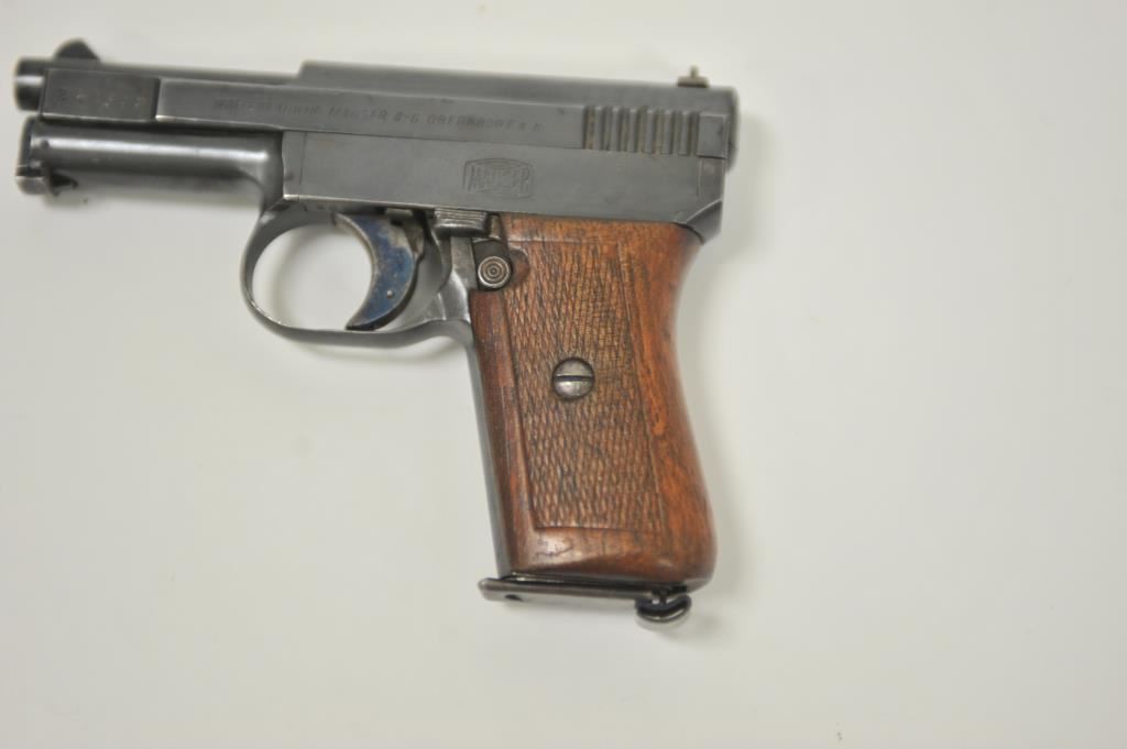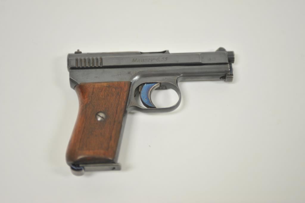 Pocket Mauser Model 1934 semi-automatic pistol, 6.35mm caliber, 3” barrel, blued finish, checkered wood grips, S/N 242599; overall good to very good condition displaying majority of original finish, good bore, crisp action, sharp markings and good grips. (C&R/PPT). Est.: $300-$600.