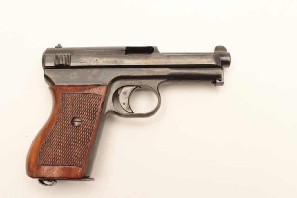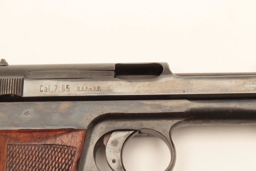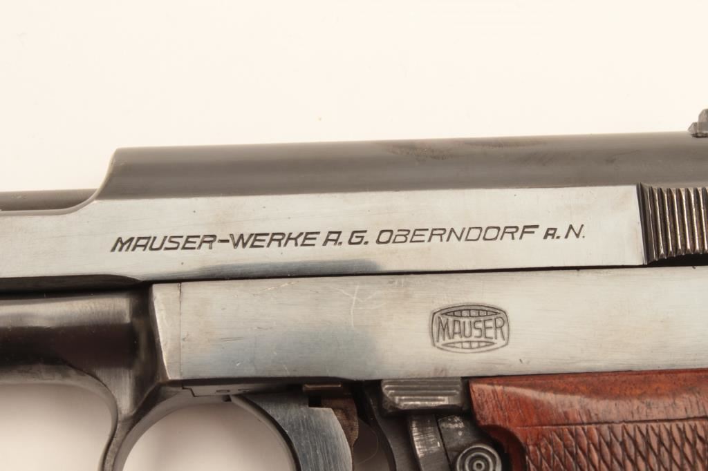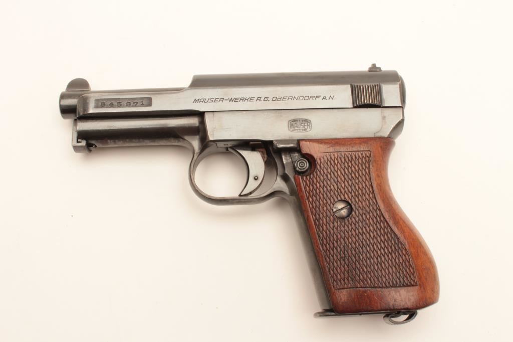 Mauser Model 1934 pocket semi-automatic pistol, 7.65mm caliber, 3.5” barrel, blued finish, checkered wood grips, S/N 545871; overall good to very good condition showing majority of original finish, very good bore, crisp markings and action, good grips. (C&R/PPT). Est.: $350-$700.