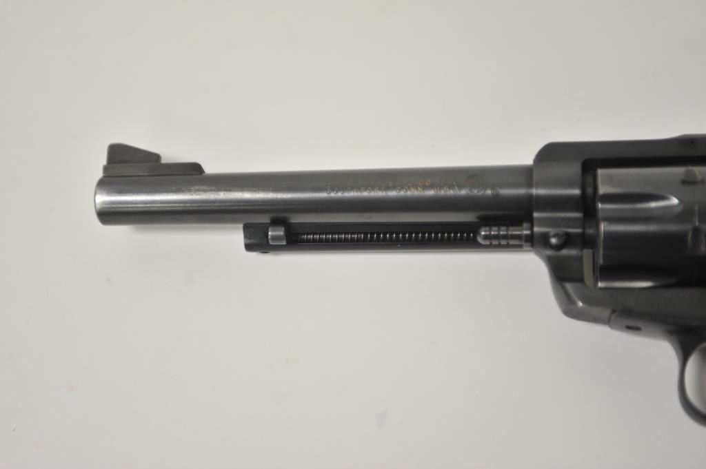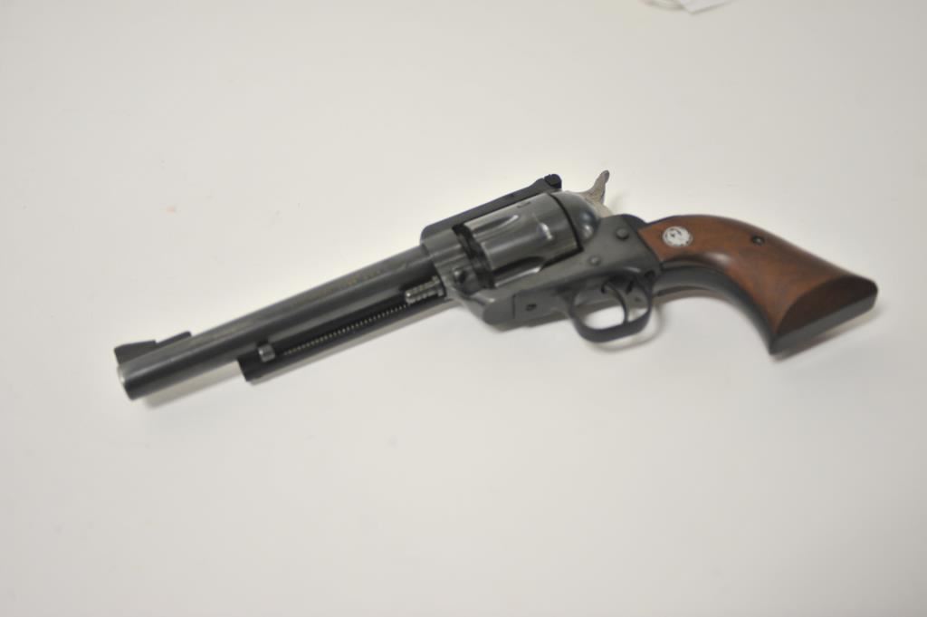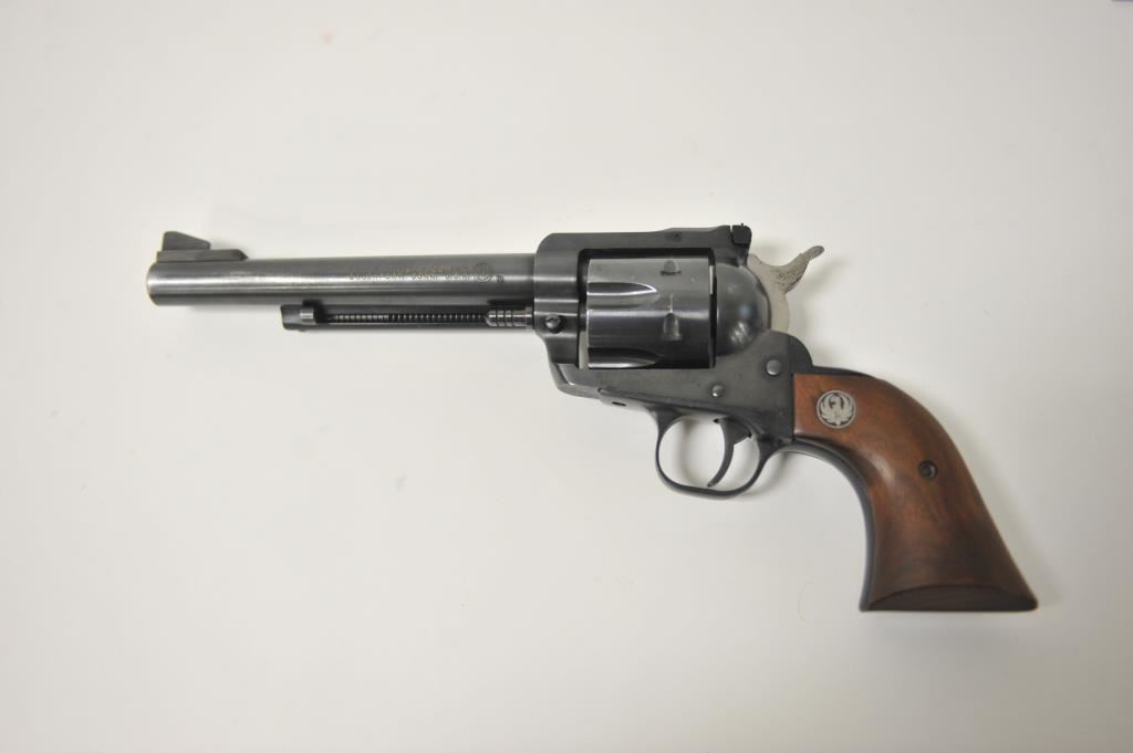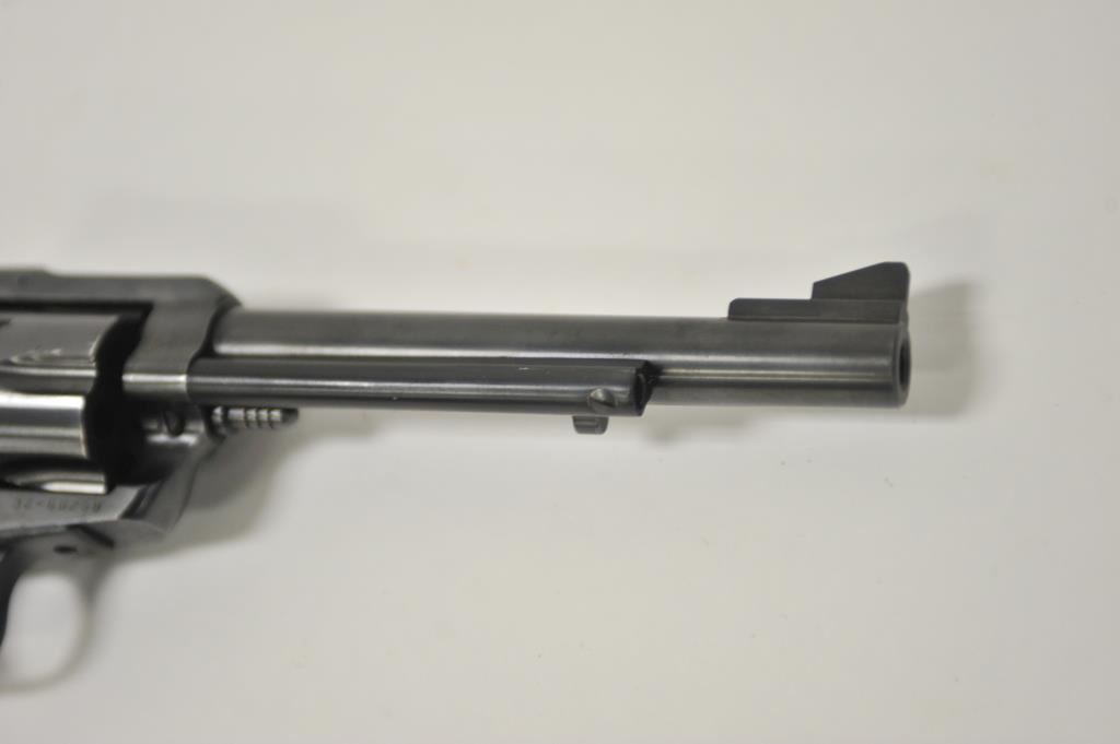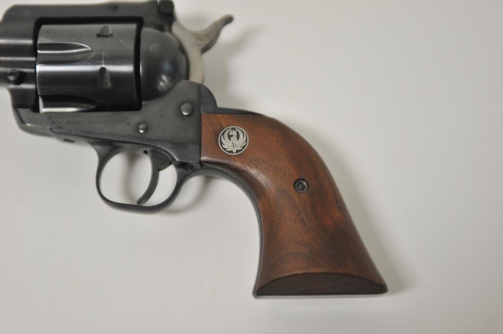 Ruger New Model Blackhawk single action revolver, .357 Magnum caliber, 6.5” barrel, blued finish, smooth wood medallion grips, S/N 32-66258; overall very good + condition with some holster wear to muzzle, very good to near fine bore, crisp action, sharp markings and very good + grips. (Modern/PPT). Est.: $250-$500.