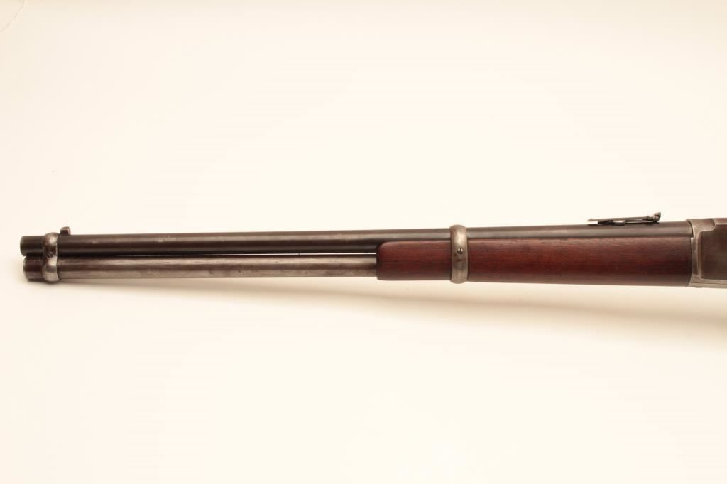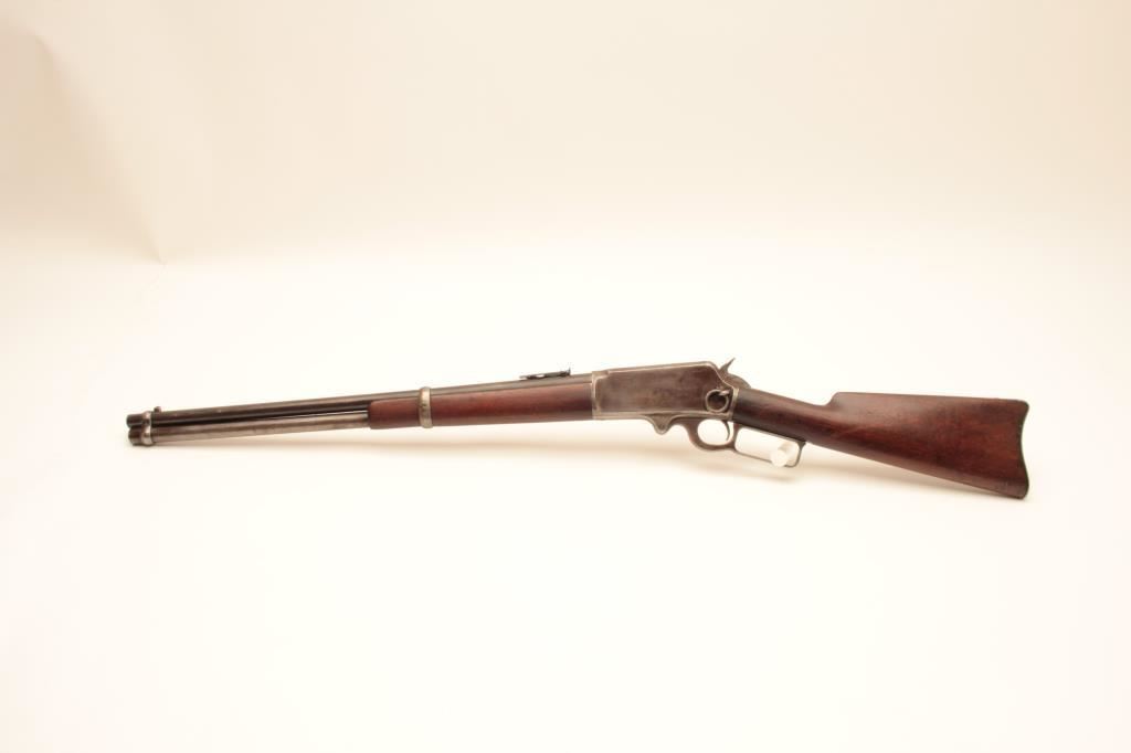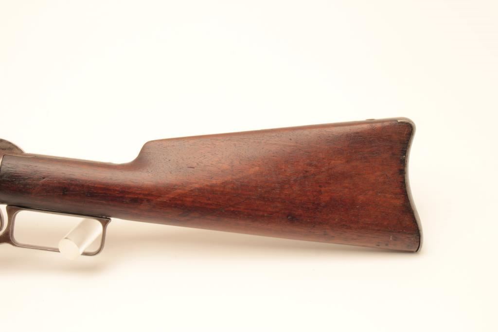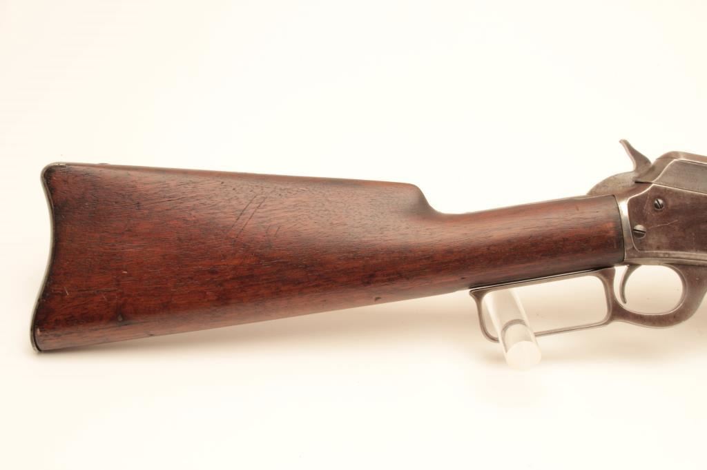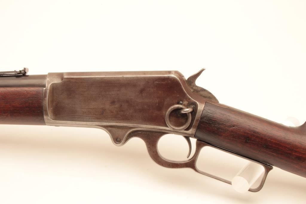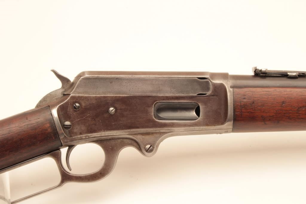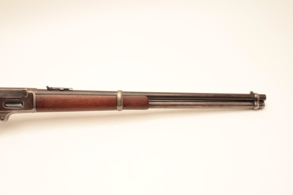 Marlin Model 1895 lever action carbine, .40-65 caliber, 22” barrel, blued finish, wood stocks, S/N 152132; overall very good condition with considerable muted blued finish remaining on barrel, balance gone to a grey/brown patina, very good bore, crisp action, good markings and overall good to very good wood stocks; saddle ring is present; approximately 200 produced; accompanied by a factory letter dated 1983 confirming Model, caliber and barrel length; date shipped noted as Nov. 21, 1899. (C&R/PPT). Est.: $2,500-$5,000.